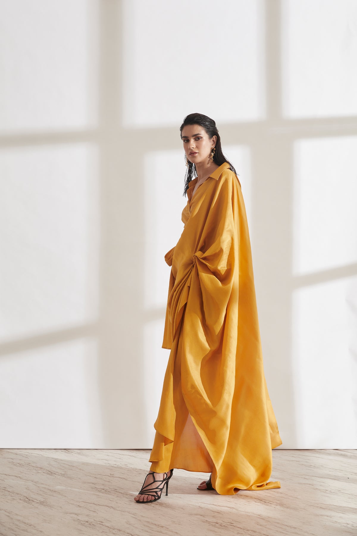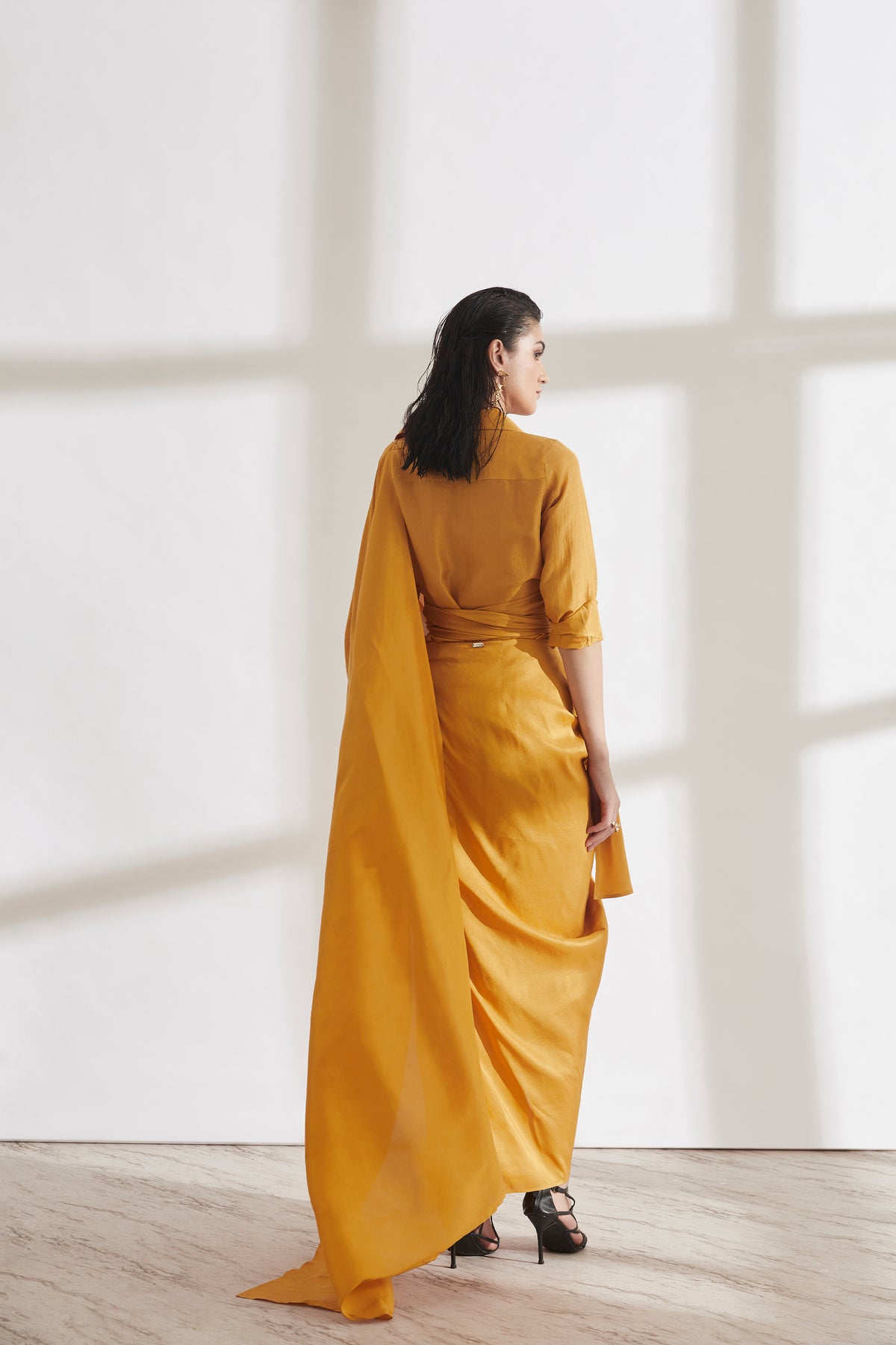 Our signature tie up shirt, goes best with the pre draped masai godet sari. Colour block it or keep it monotone to play around with jewellery.