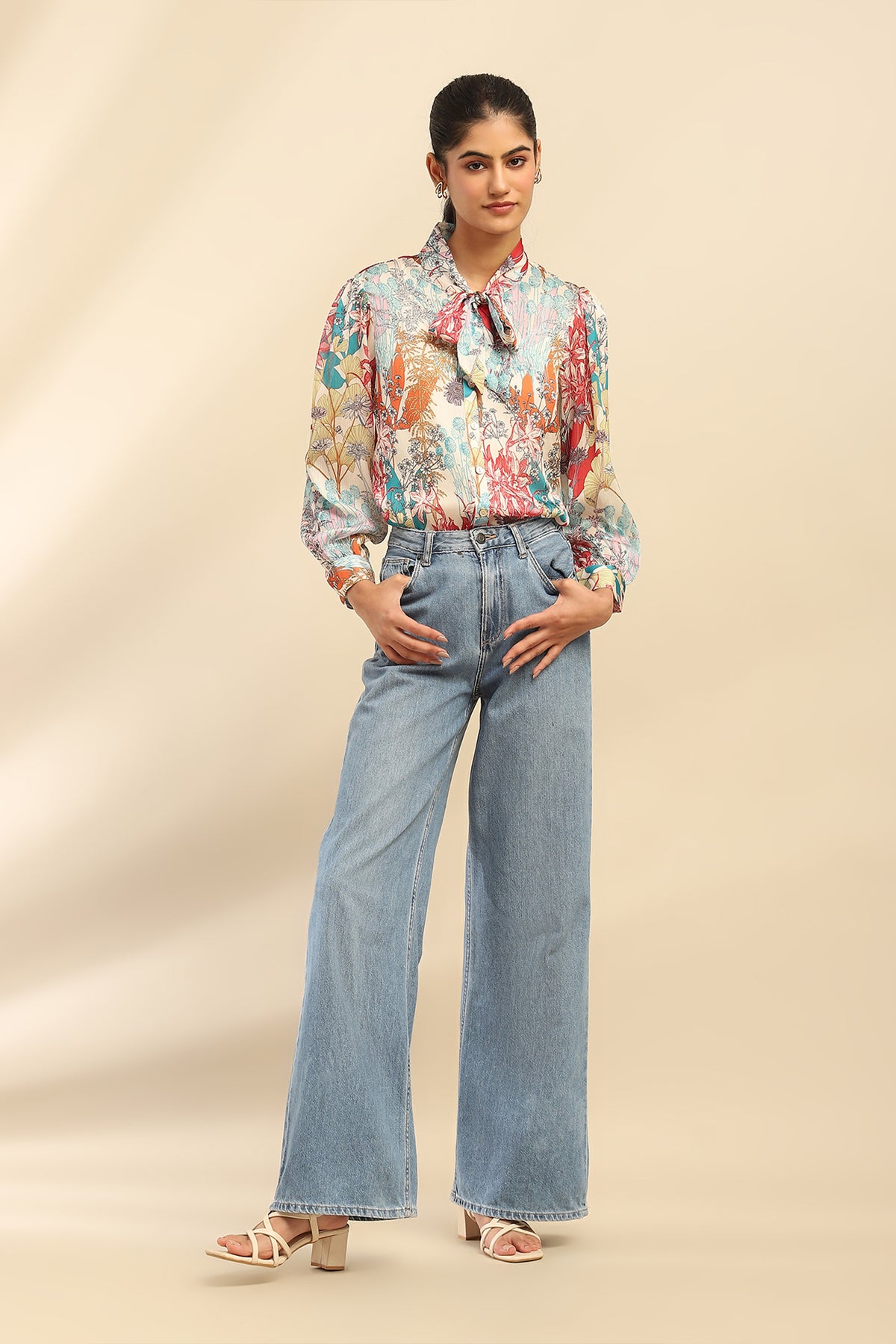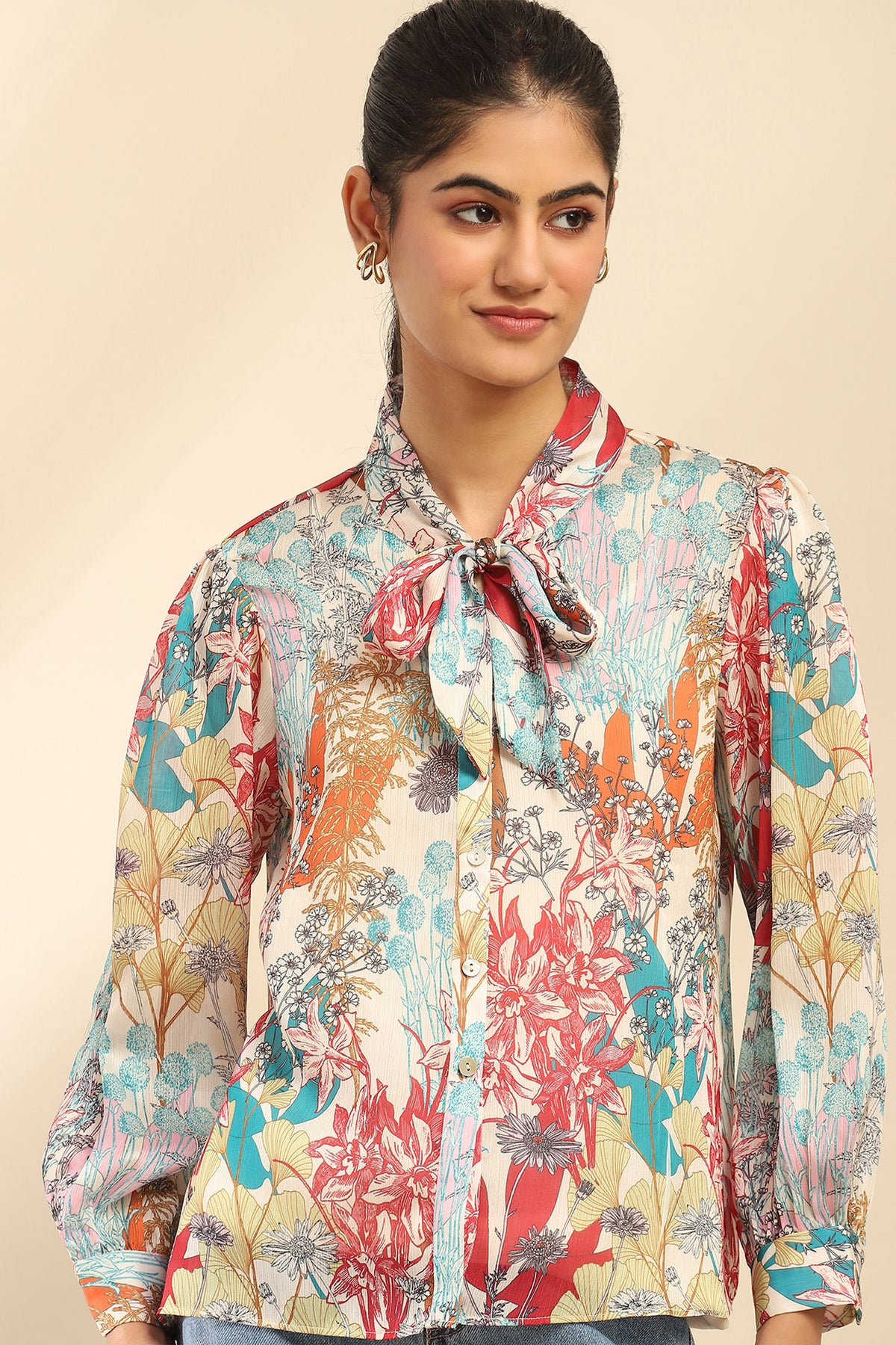 Aarke Ritu Kumar Off White Irises Shirt With Camisole indian designer wear online shopping melange singapore