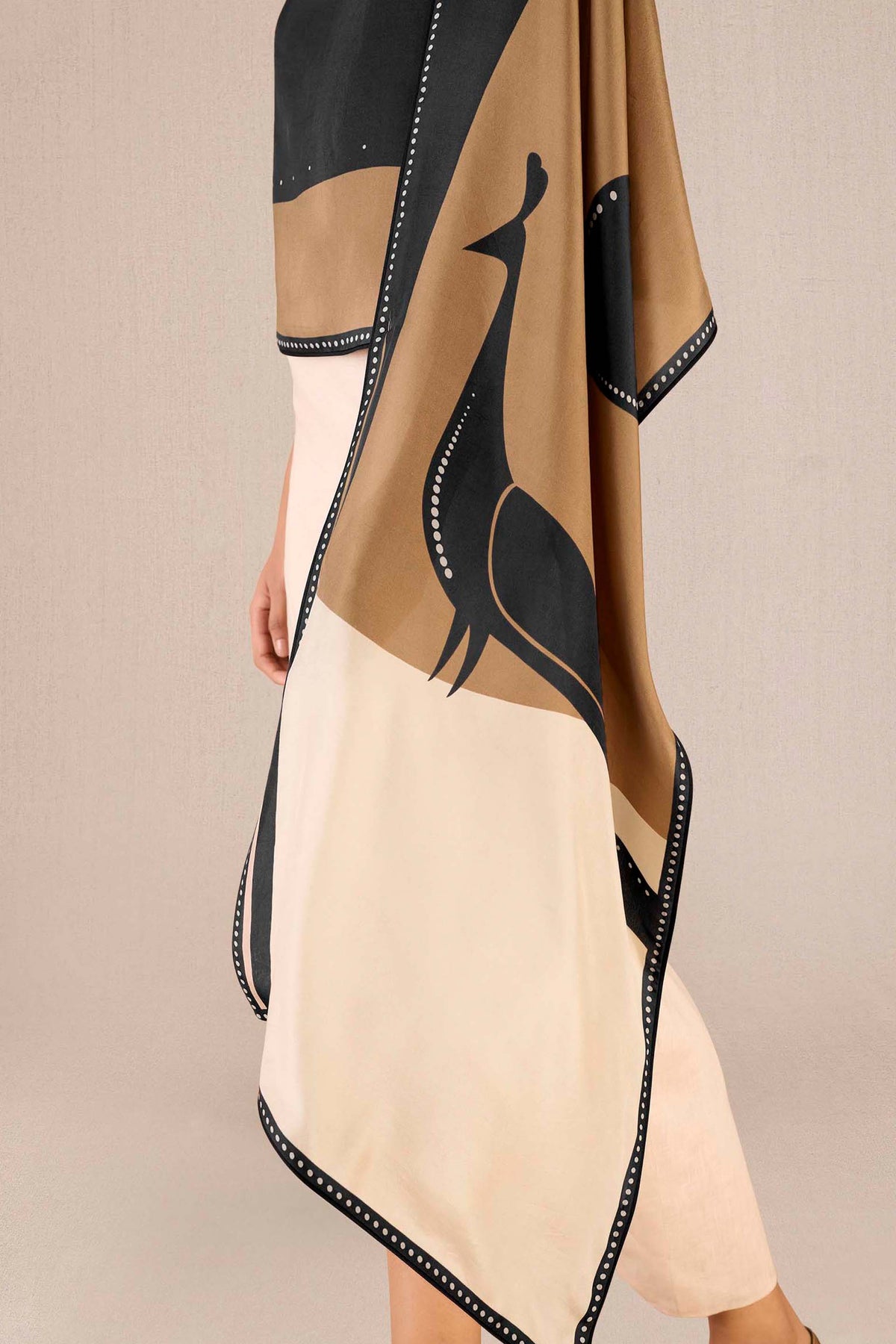 Wrap yourself in the softness of silk with our ceyda scarf, which combines colour-blocking and eclectic prints into a wardrobe staple. Patterned with ampm’s signature betel leaf motif and peacock, wear ceyda anywhere from a casual stroll on the beach to a late-night soiree.