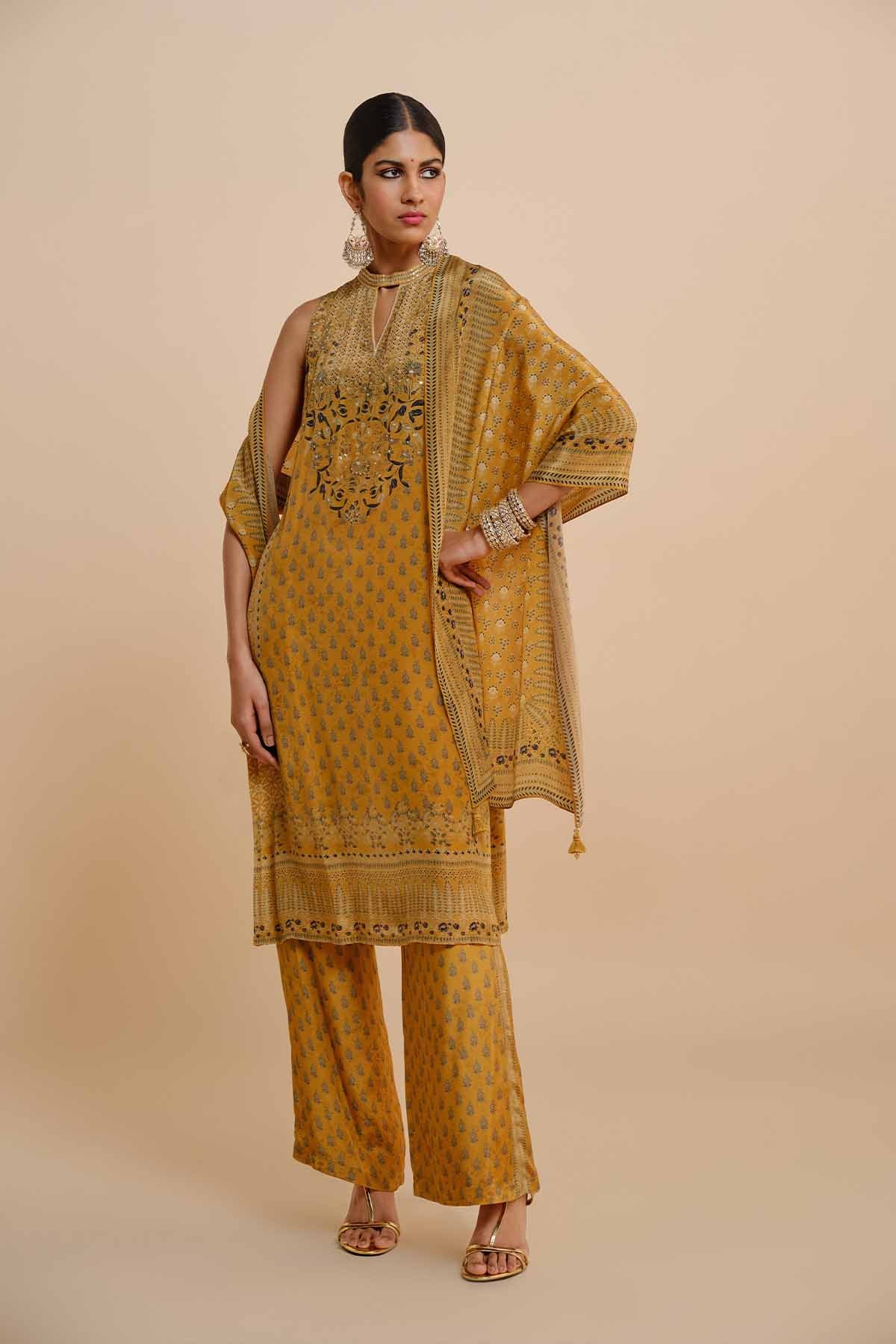 Anita Dongre Emira Stole Yellow indian designer wear online shopping melange singapore