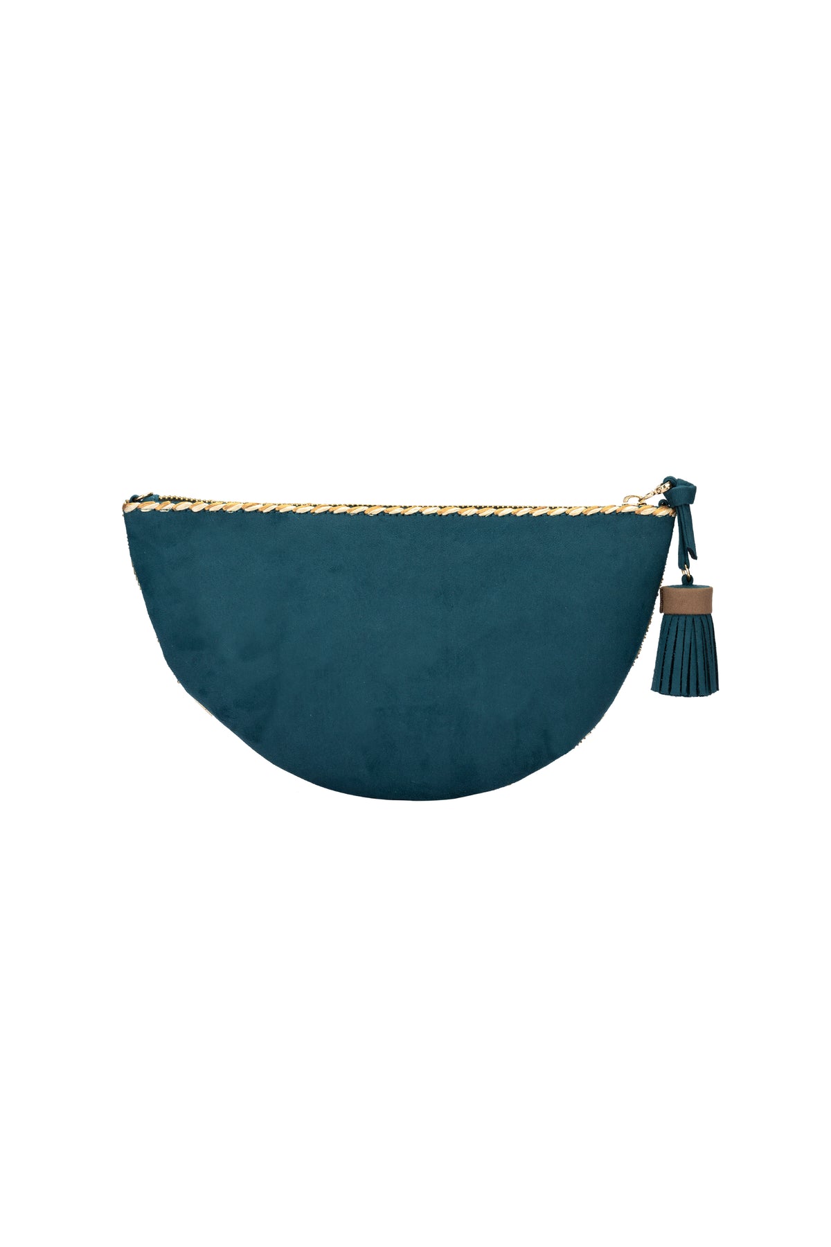 Material: Base fabric of jute/silk with contrast inner lining. Detachable chain strap in gold