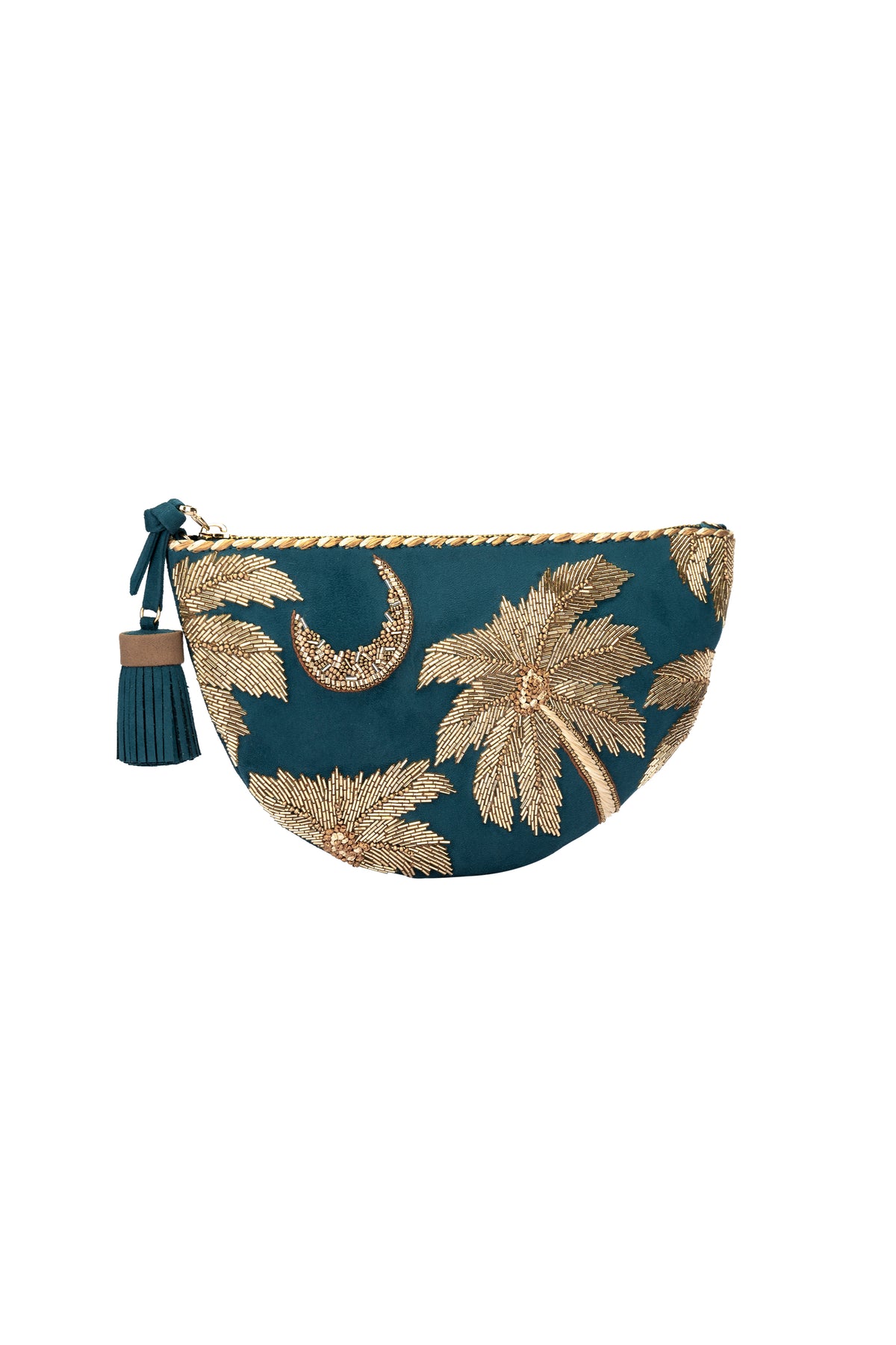 Stones: Hand embroidered design in bead, raffia, Suede base