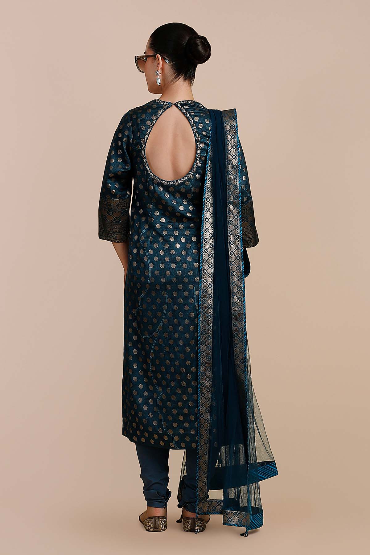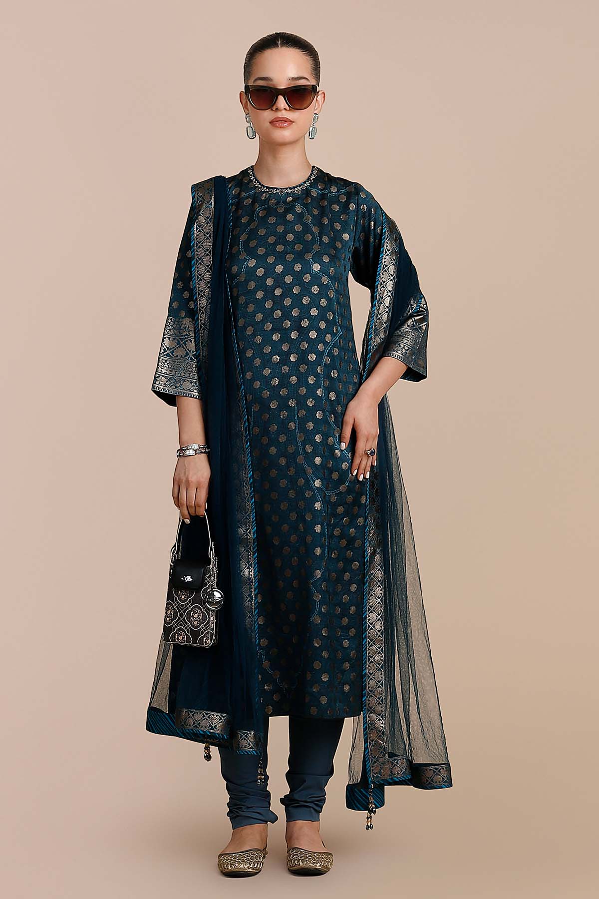 JJV.Kapurthala By JJ Valaya Prussian Blue Sheer Stole indian designer wear online shopping melange singapore