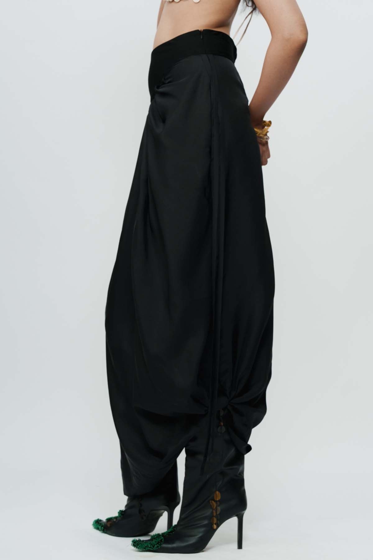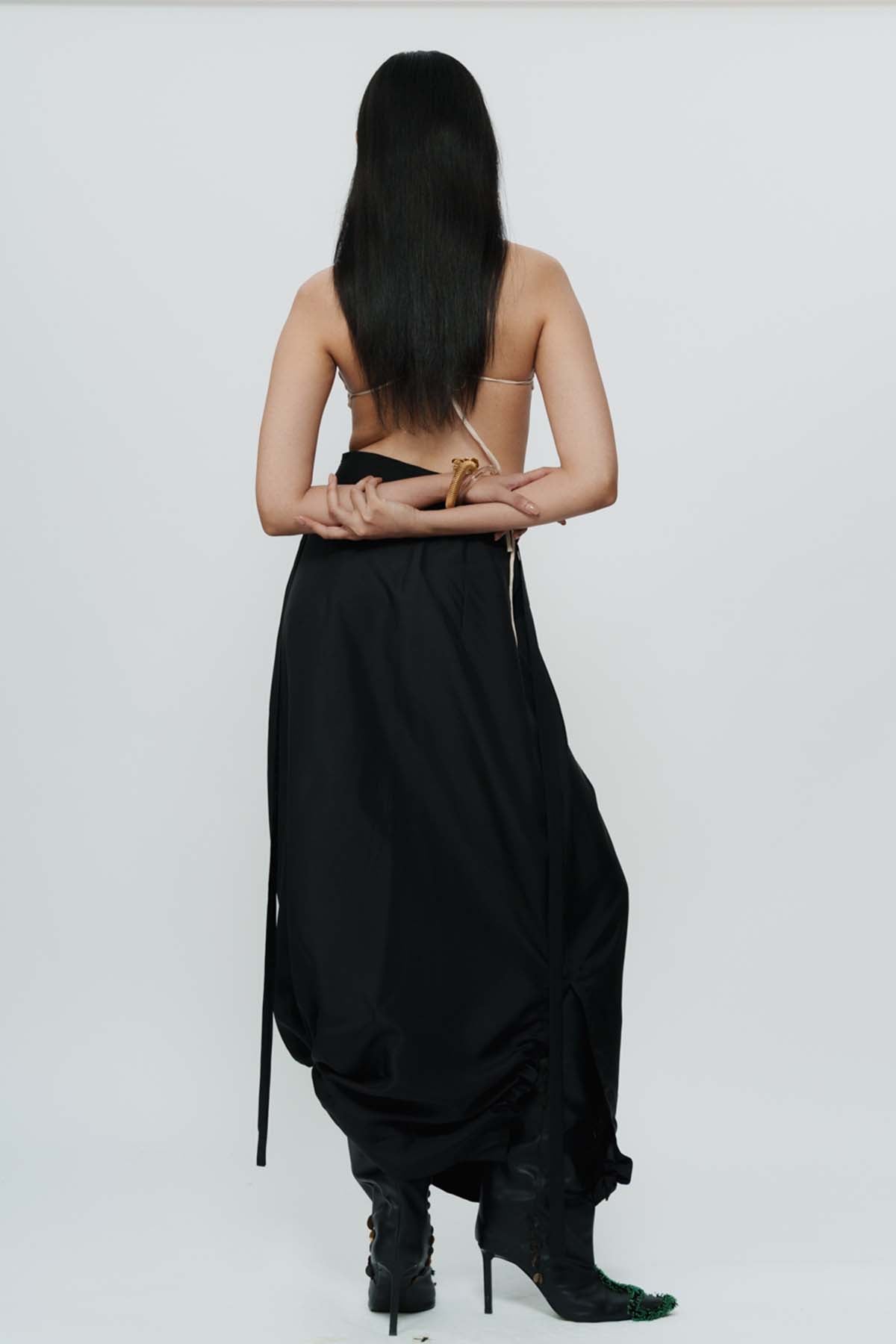 AKOK Black Draped Knotted Skirt indian designer wear online shopping melange singapore