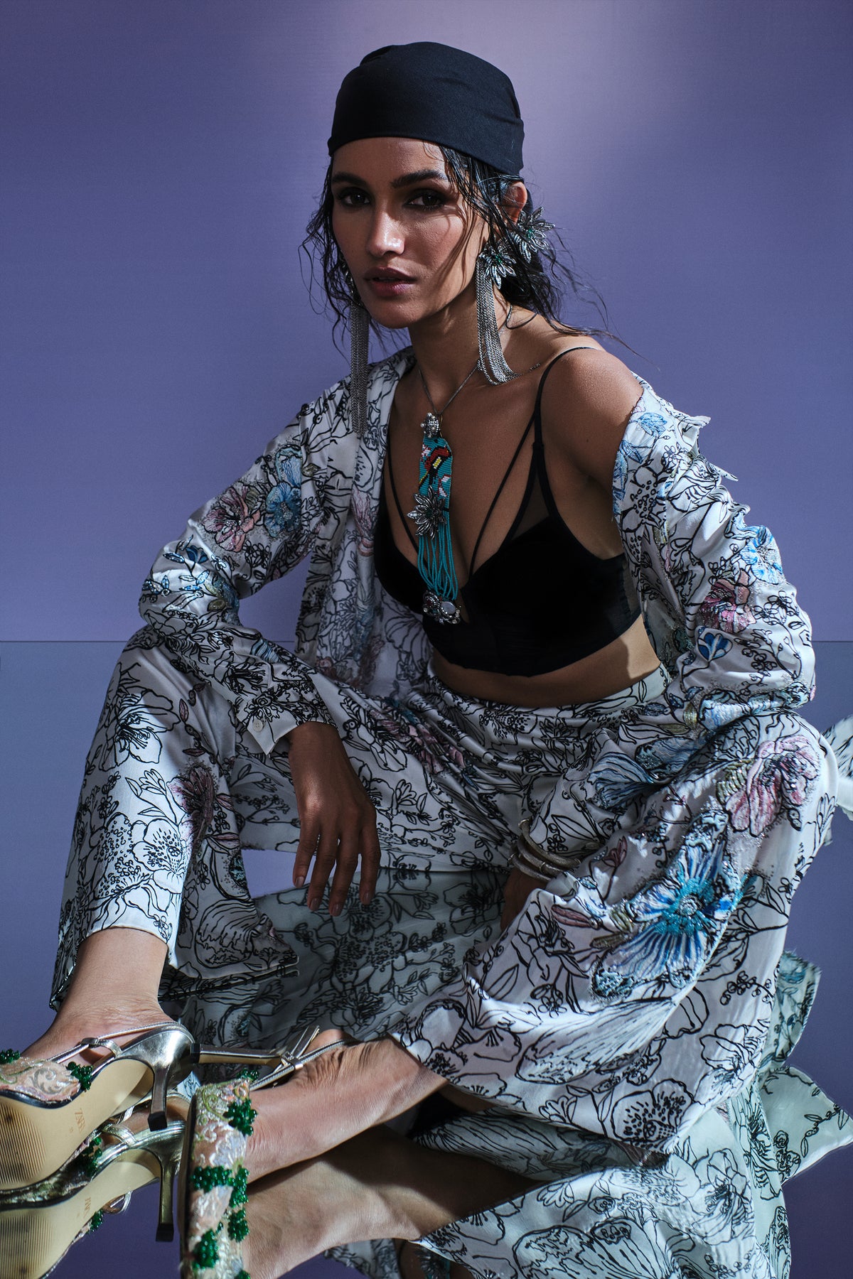 The combination of fabric with beadwork and thread embroidery elevates the aesthetic of the loungewear, transforming it into a sophisticated ensemble suitable for relaxing at home or holidaying or hosting gatherings with friends. The handcrafted nature of the beadwork and thread embroidery ensures that each loungewear pj set is unique and exclusive.