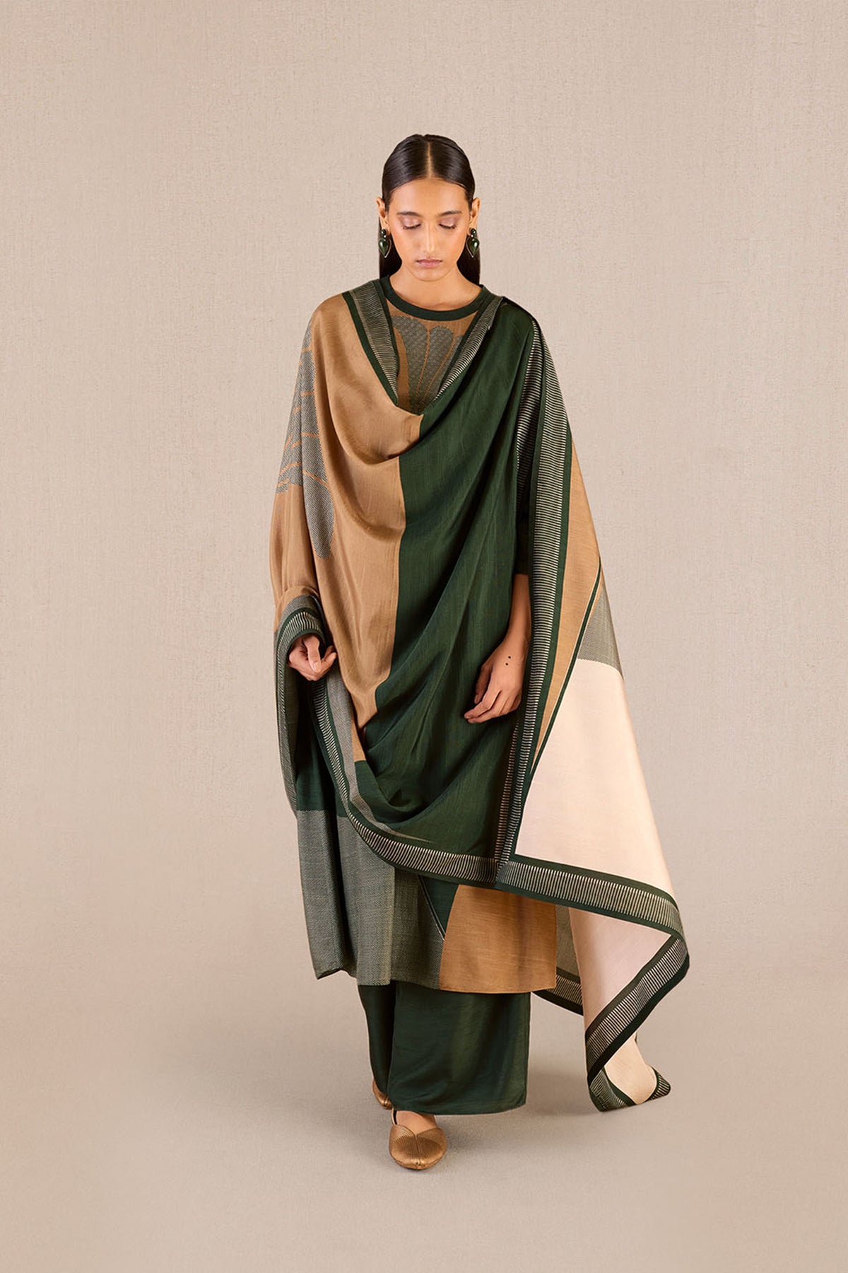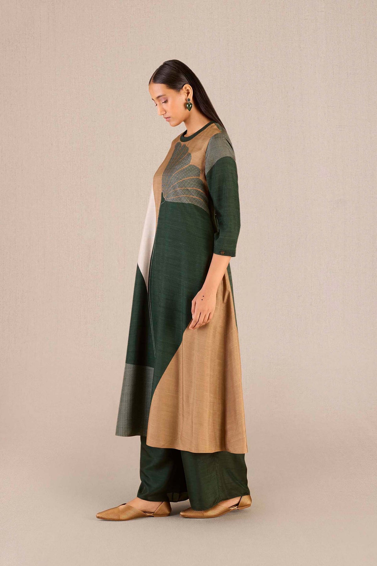 Patterns of flowers and leaves bloom against a colour-blocked kurta of rose silk. Our sahira kurta set is a medley of jewel tones and fine prints, with cording details running along the cuffs and neckline, accentuated by brass buttons with cut-out floral motifs. The dupatta is light as air, with colours and stripes draping across its length. With matching pants, sahira defines everyday luxury, especially when paired with a sensible tote and stylish flats to take you from work to dinner. Ā Ā Ā Ā