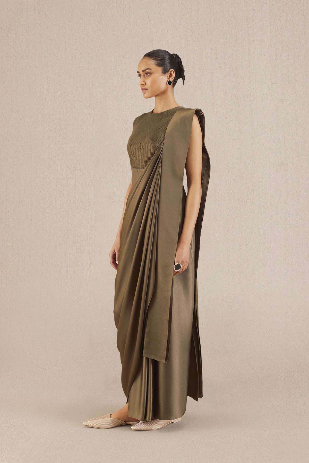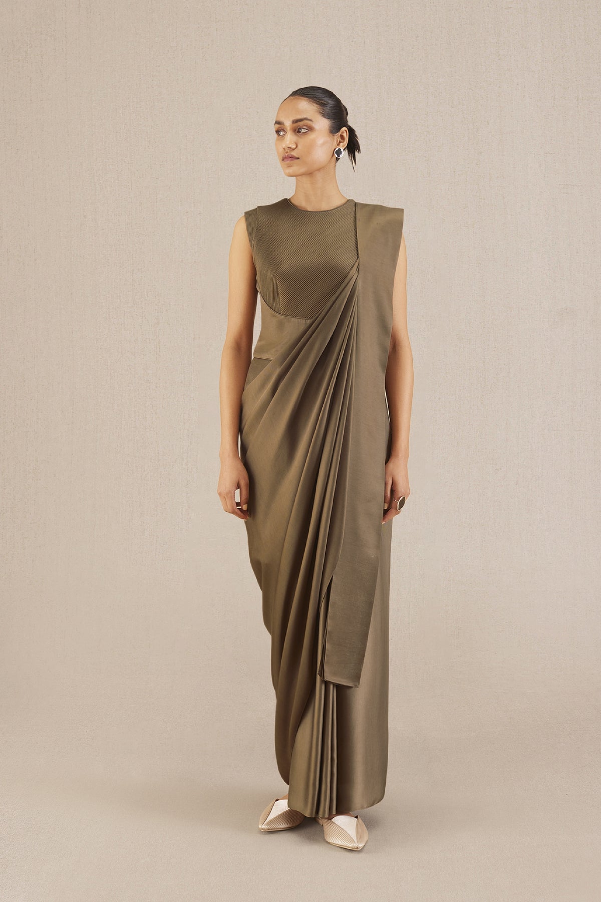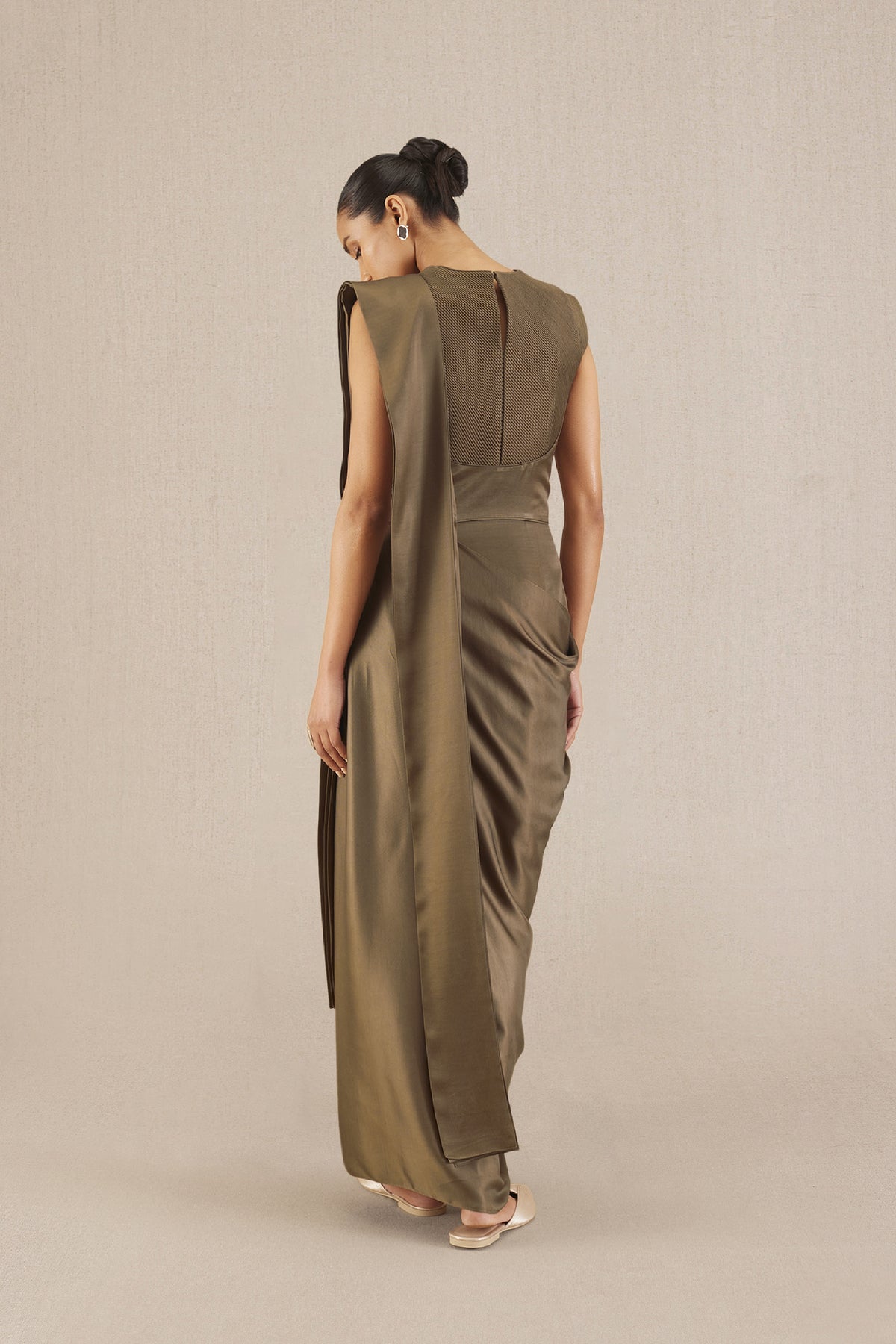 Cascading like the waterfalls of Venezuela. The Ila draped sari in camel is crafted to contour you well. We've pre-draped it so you don't have to.