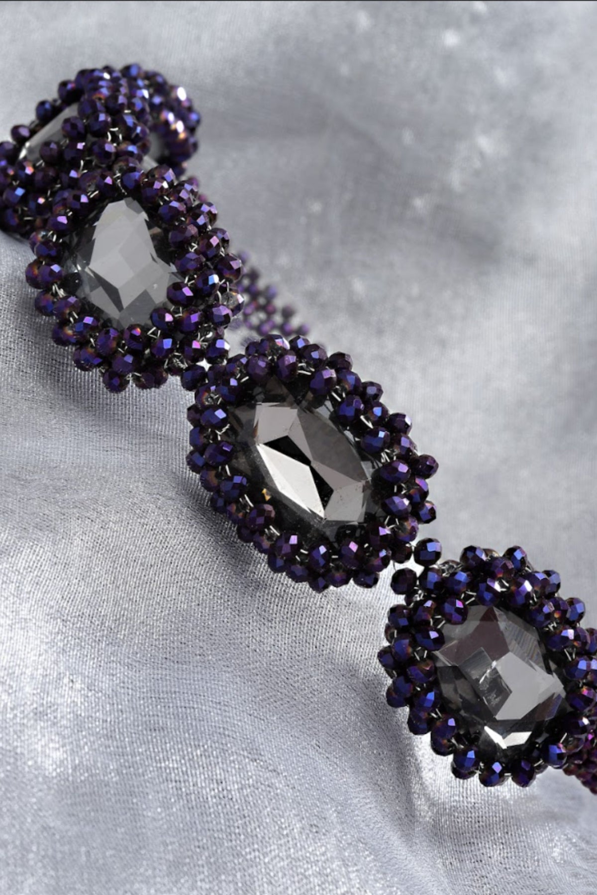 Purple Link Chain Necklace with Faceted beads and crystal stones in the center