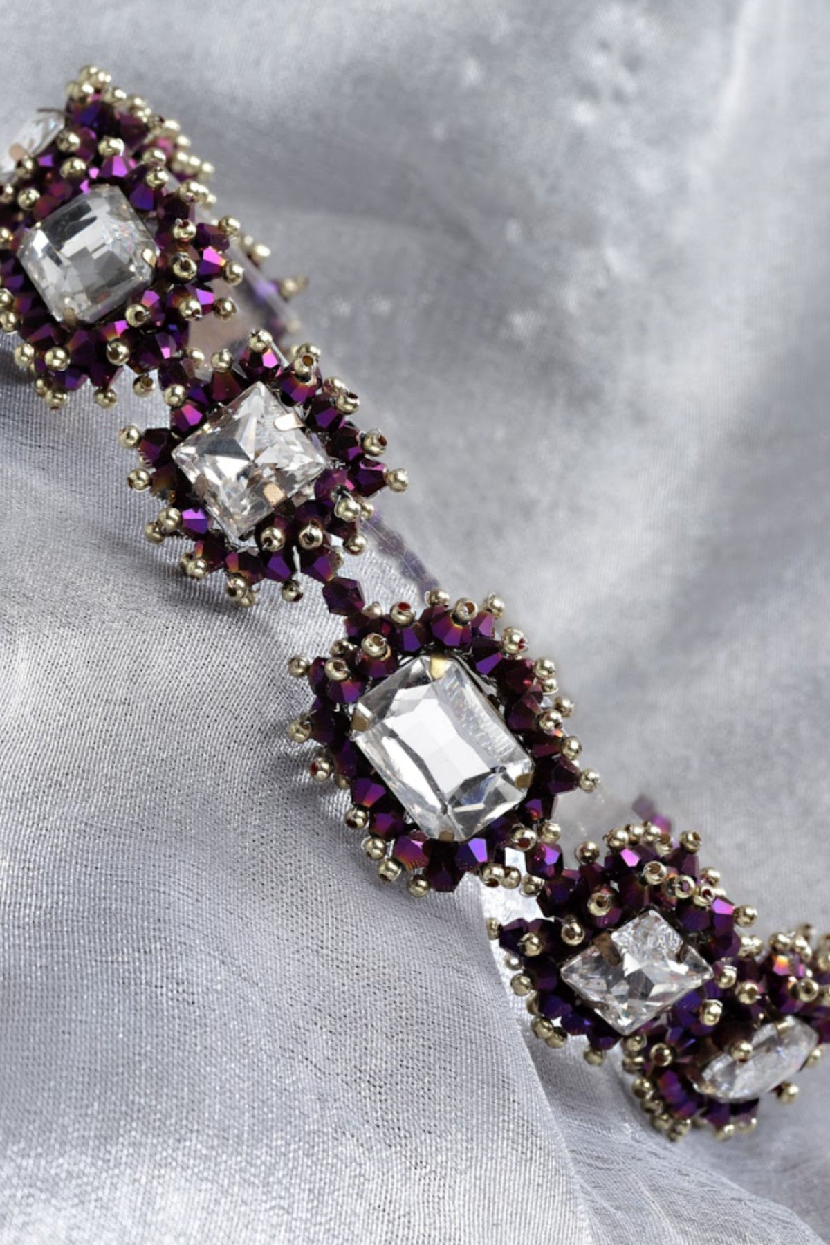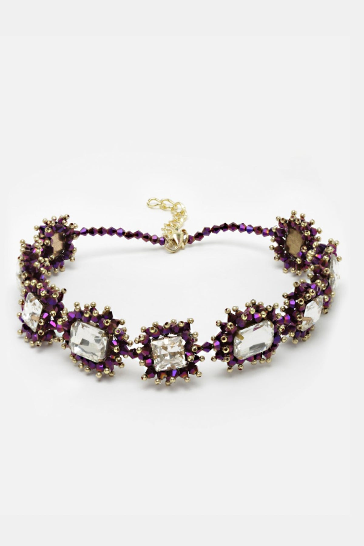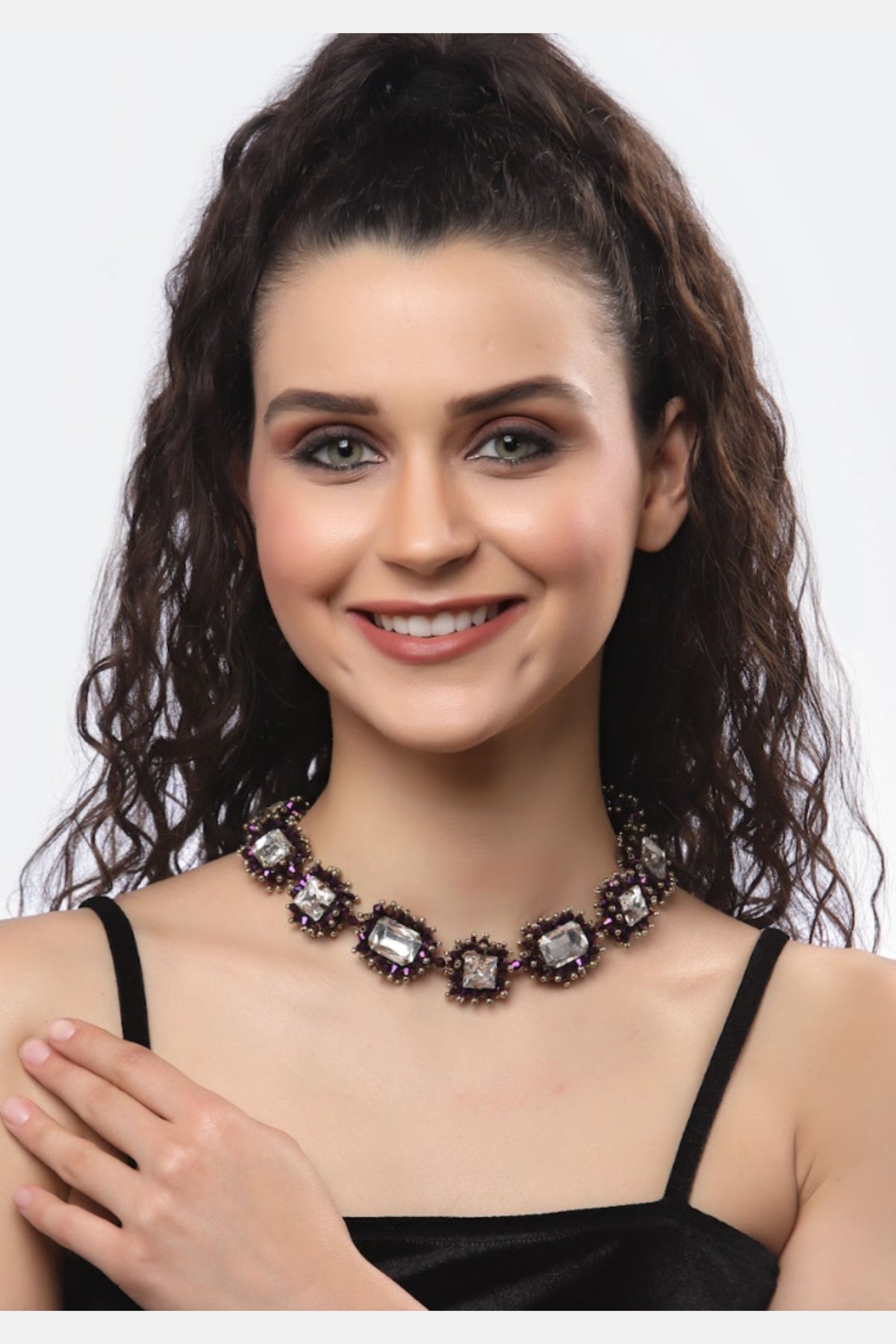 Purple Link Chain Necklace with Faceted beads and crystal stones in the center