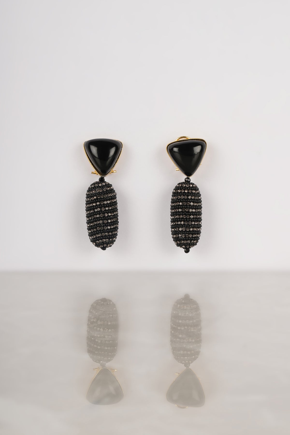 Introducing our "Prism drops" earrings, a fusion of modern elegance and edgy sophistication. Crafted from high-quality resin and crystals, these earrings feature a chic black hue, accentuated by a unique cylindrical drop and a triangle-shaped top. Embrace the contemporary allure of geometric design and add a touch of mystery to your ensemble. Elevate your style with these chic earrings, perfect for both formal events and chic gatherings. Shop now and experience the epitome of contemporary fashion.