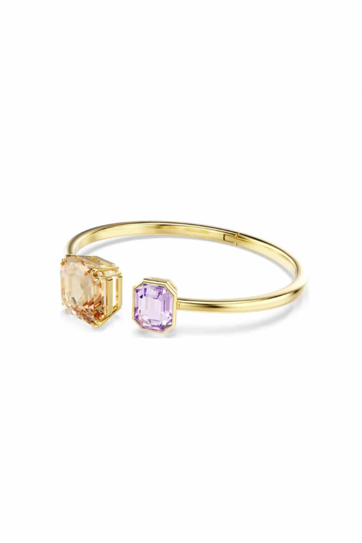 The dual offset cuff is a modern expression of balance through contrast. Featuring two asymmetrically placed swarovski crystals - one in a warm champagne tone and the other in a soft lilac hue. This open gold-toned cuff captures light from every angle. Sculptural yet effortless, it’s designed to be worn solo for a subtle statement or layered to amplify its quiet brilliance.