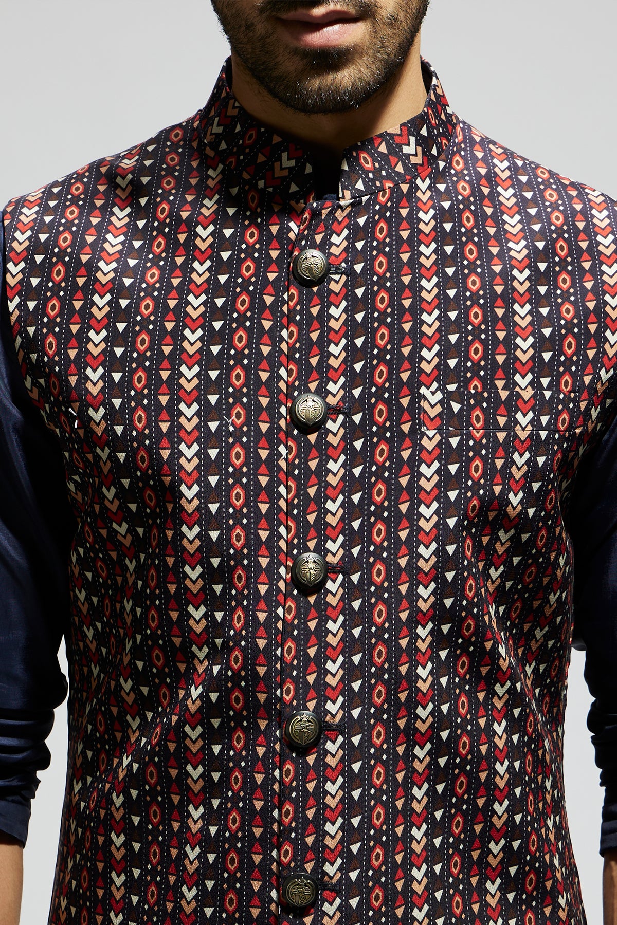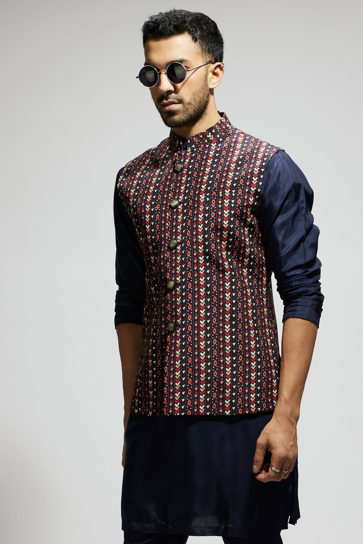 SVA Blue Boho Geo Printed Bundi indian designer wear online shopping melange singapore
