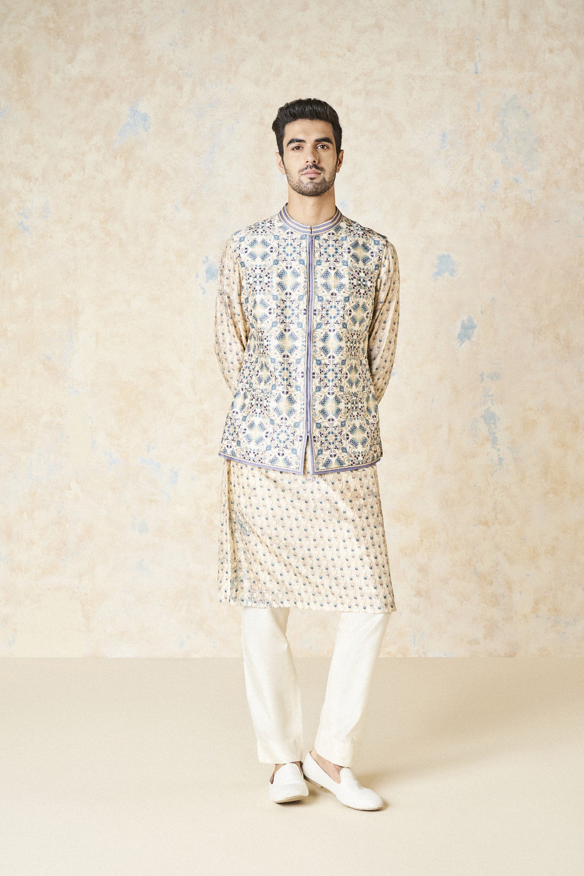 Inspired by palatial motifs, evyavan is designed to add a statement touch to your festive ensembles. A stand out addition to your occasionwear wardrobe.