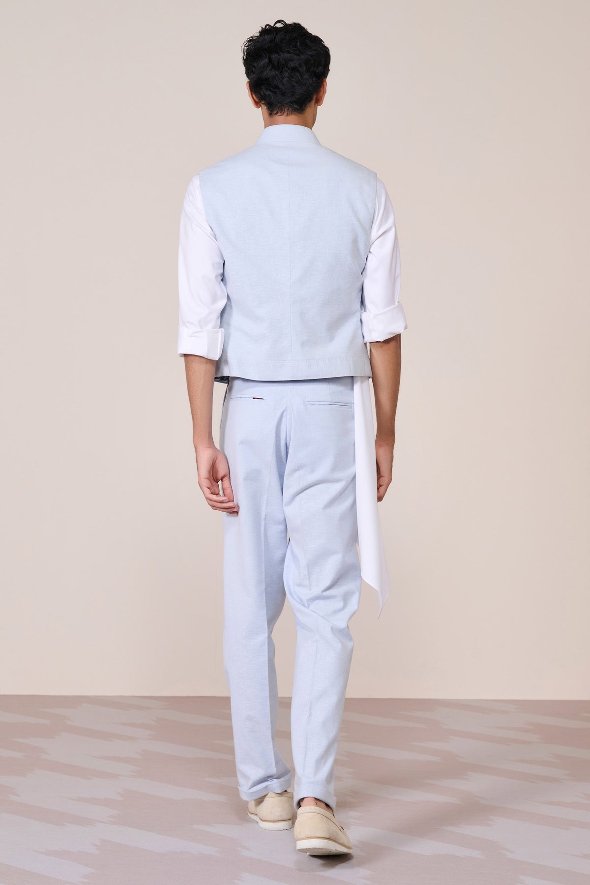 Crafted with refined simplicity this minimalist linen waistcoat embodies understated elegance. The S and N signature Adamas and tape detailing lend a timeless touch of luxury to the piece.
