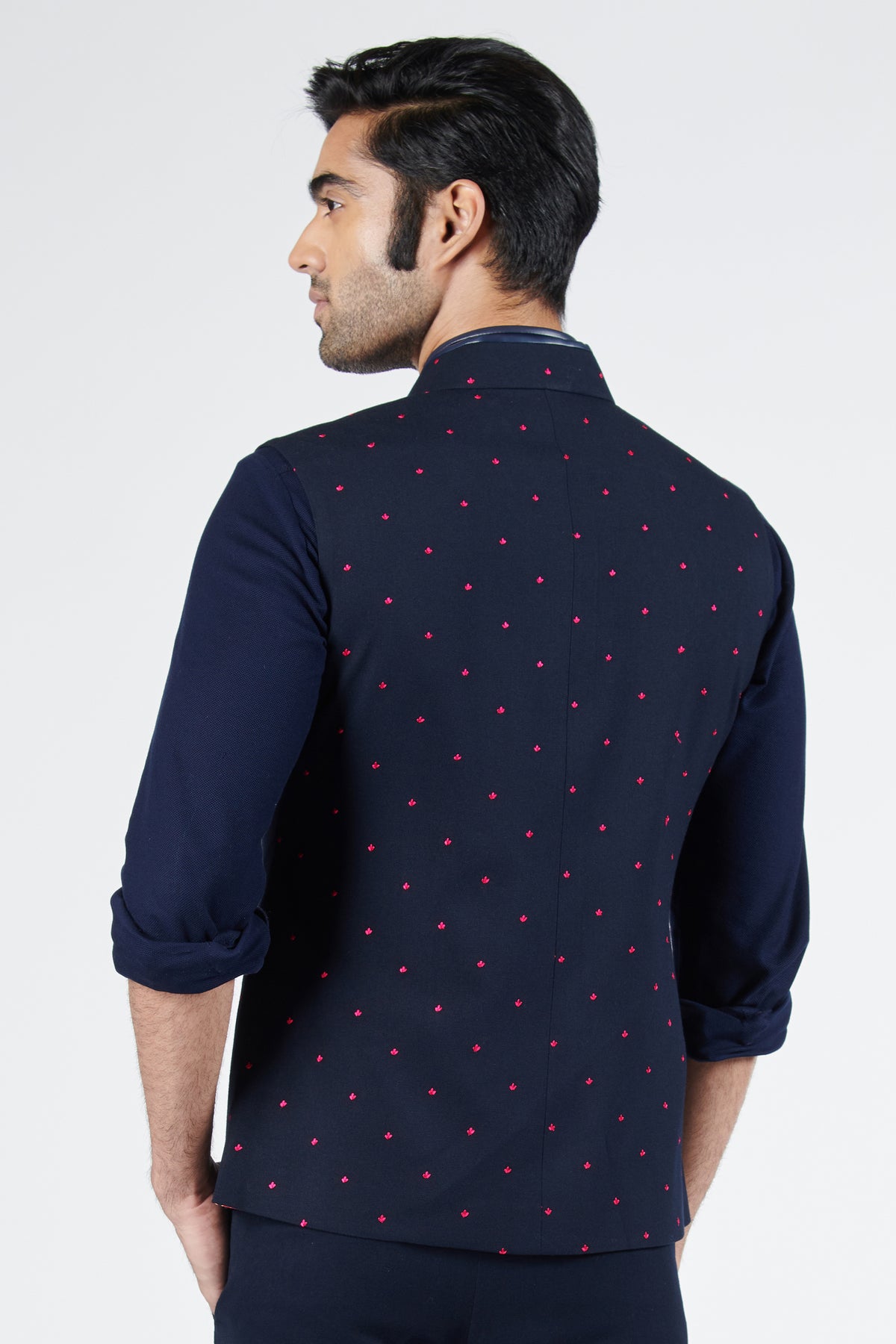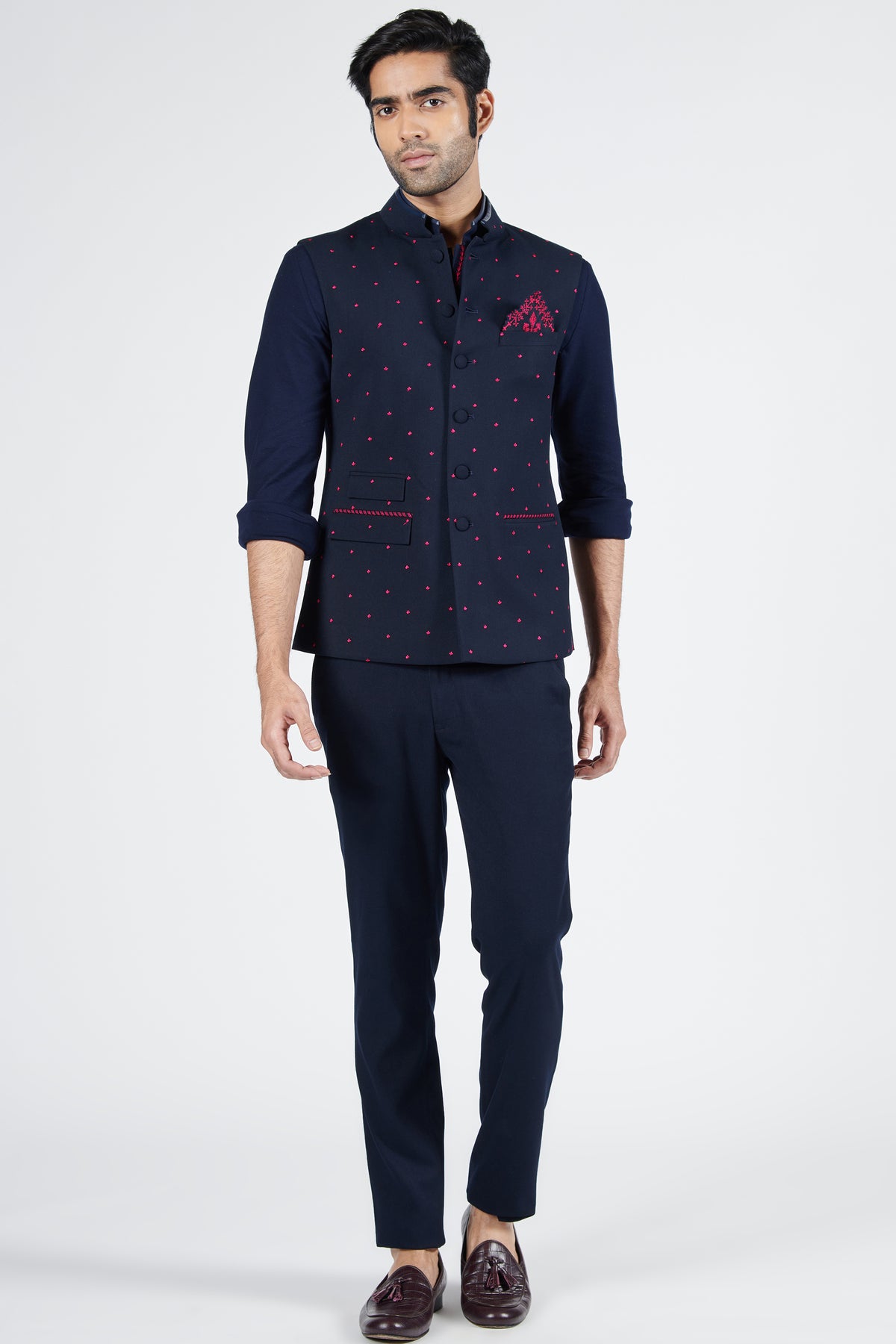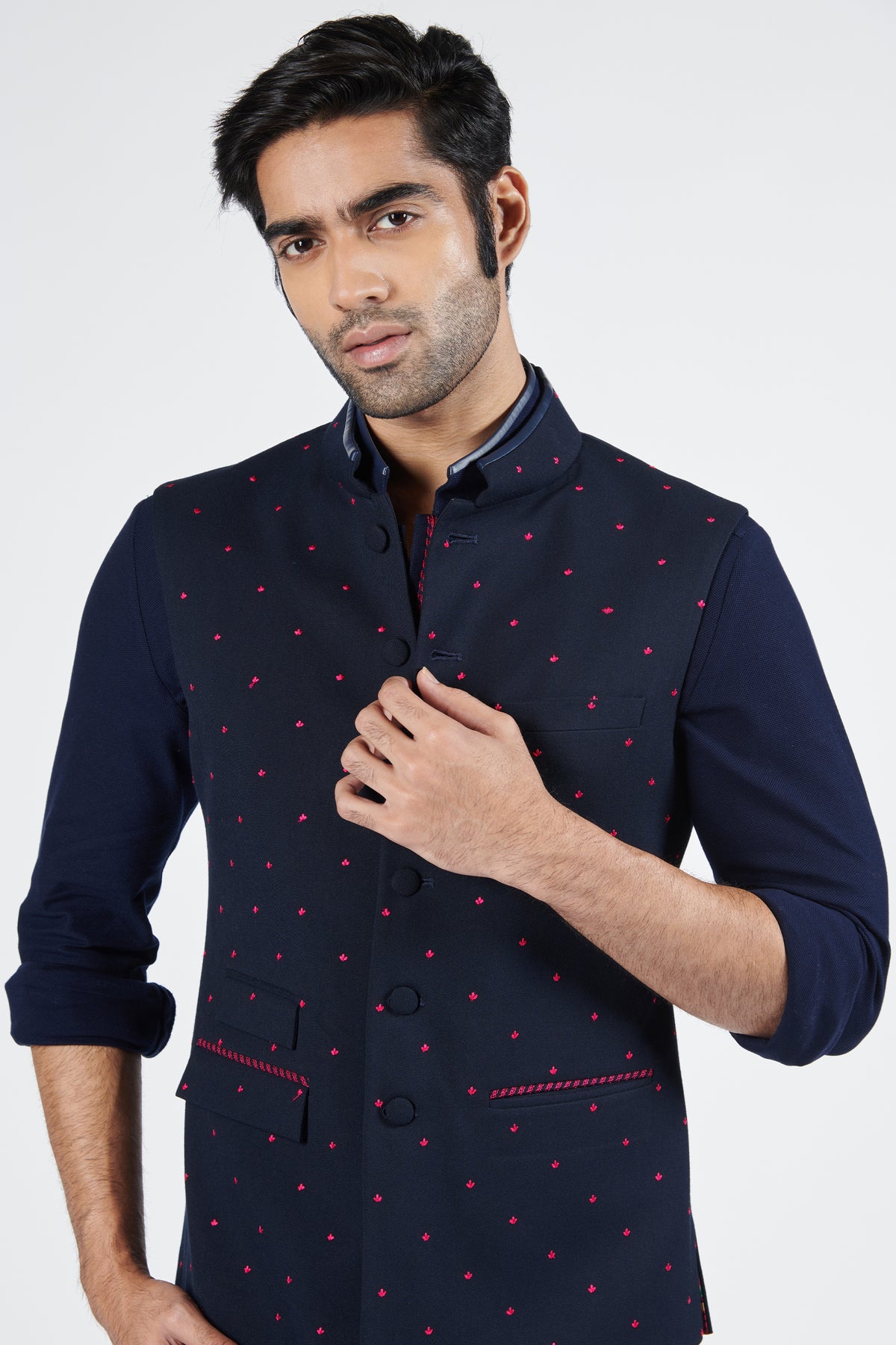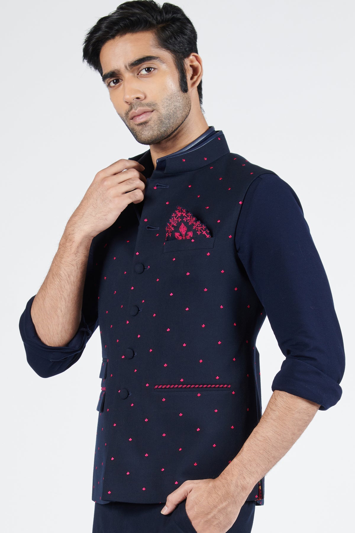 Shantanu & Nikhil Navy Waistcoat With Pink Thread Work indian designer wear online shopping melange singapore
