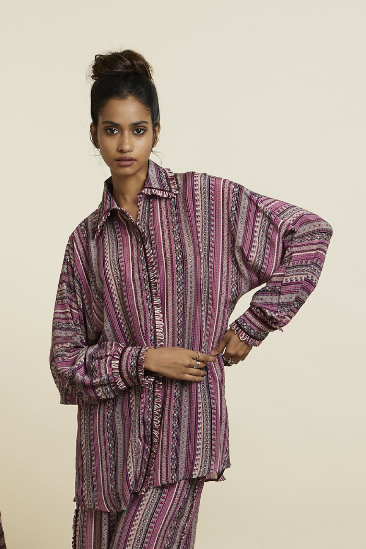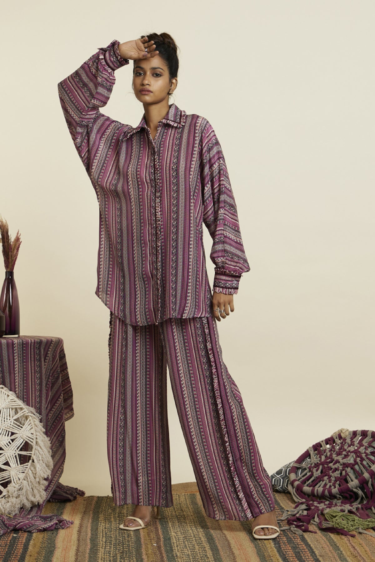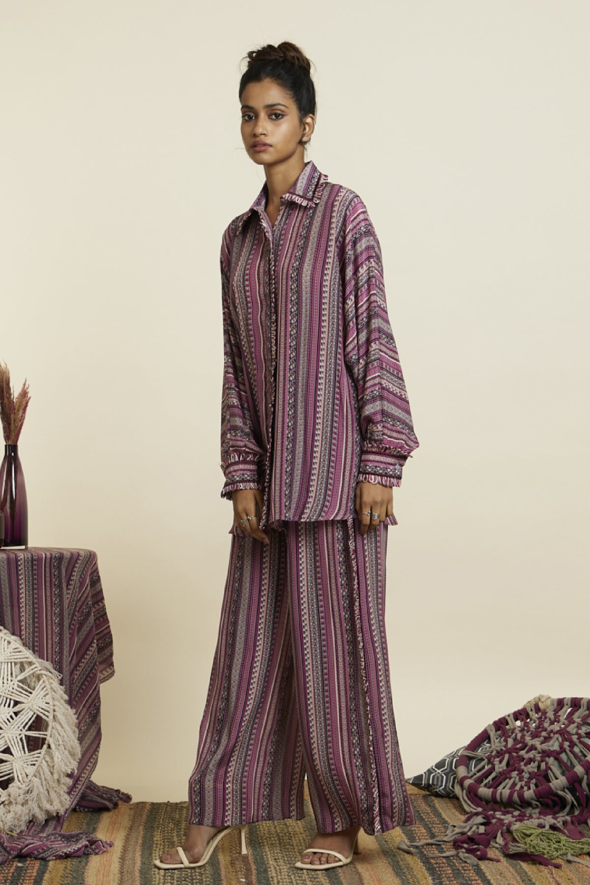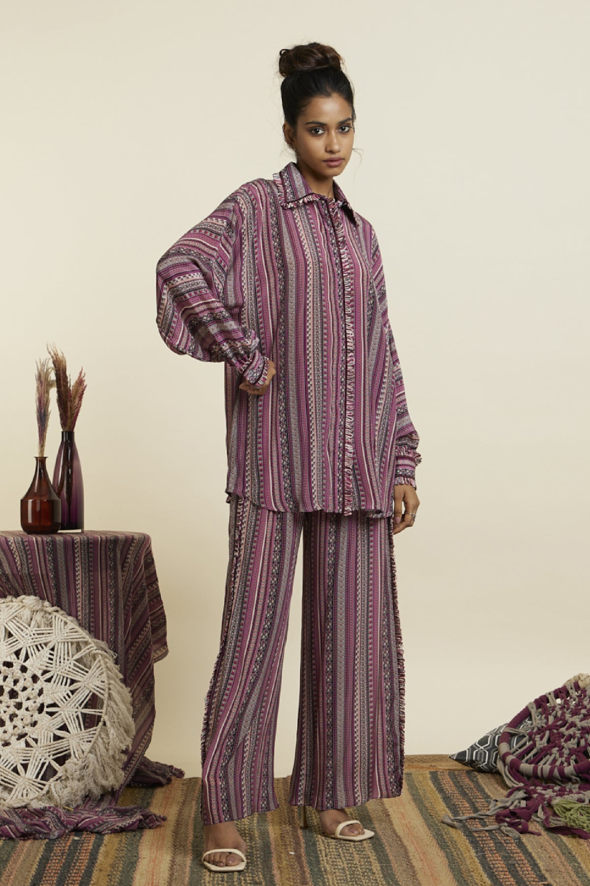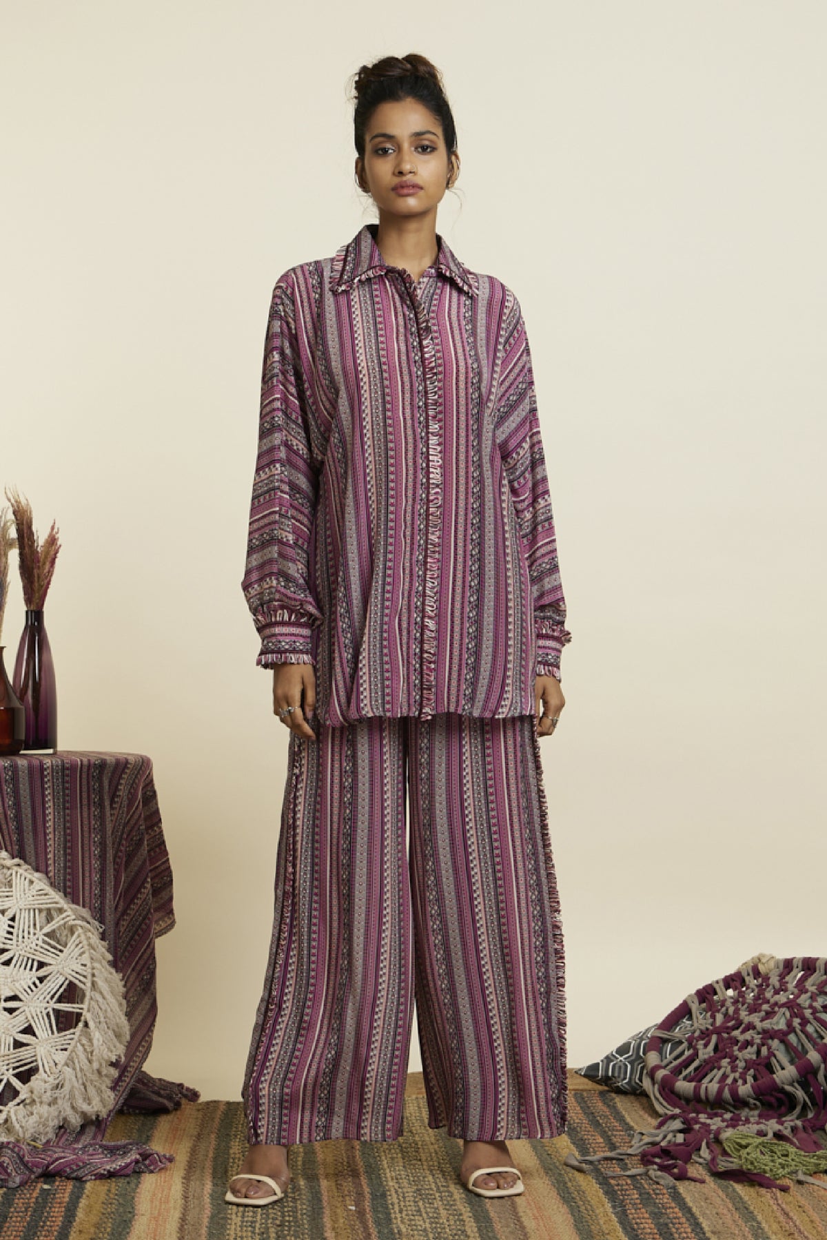 SVA Merlot Boho Stripe Print Oversized Coord Set Indian designer wear online shopping melange singapore