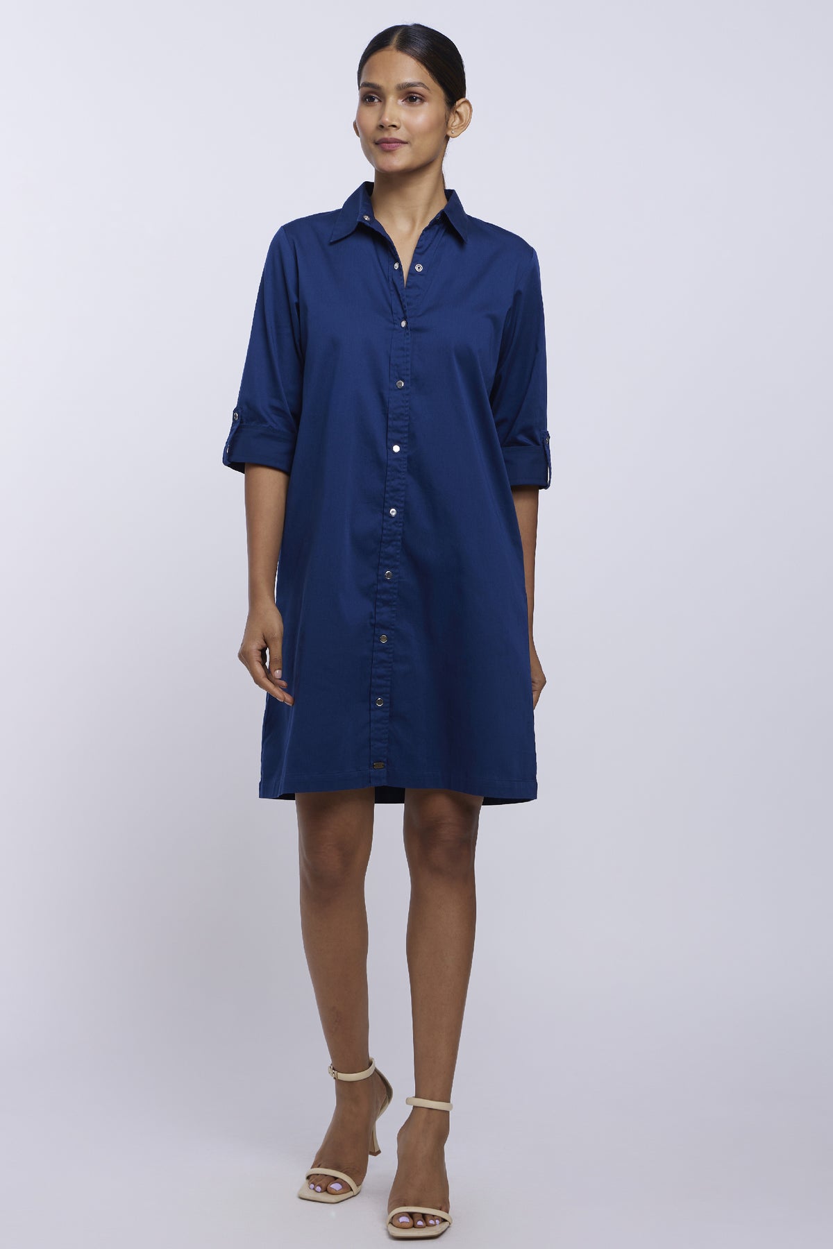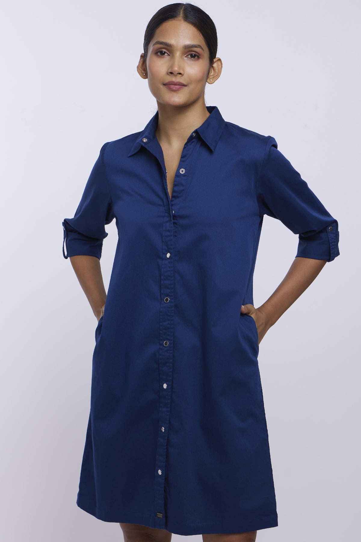 Pallavi Swadi Mid Night Blue Shirt Dress indian designer online shopping melange singapore