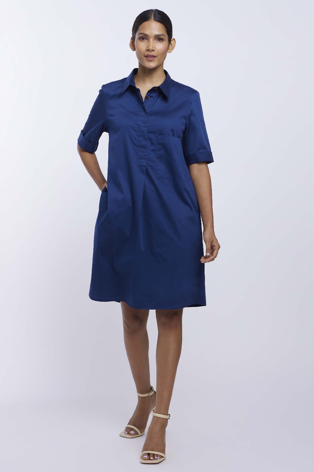 Make mondays as well as your holidays more stylish with a throw-on-and-go silhouette of our timeless pleated dress, designed from a cotton blend with elegant details. This versatile dress is a closet investment as it perfectly fits the dress code for work, weekending as