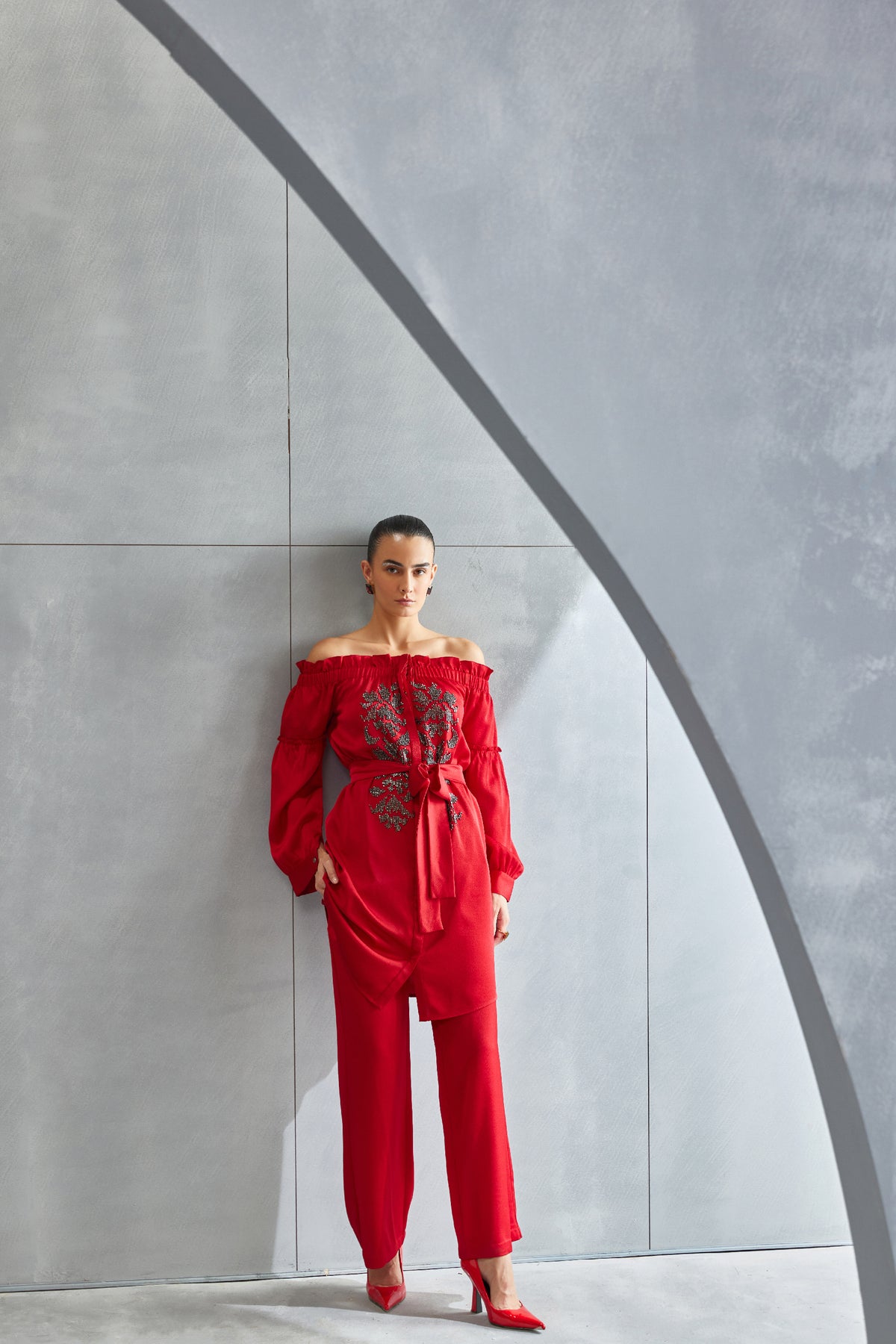 Namrata Joshipura River Leaf  Off Shoulder Co-ord Set Indian designer wear online shopping melange singapore
