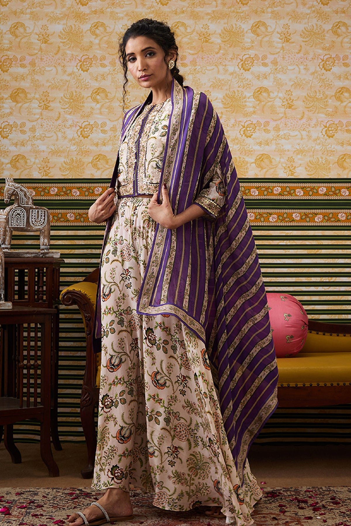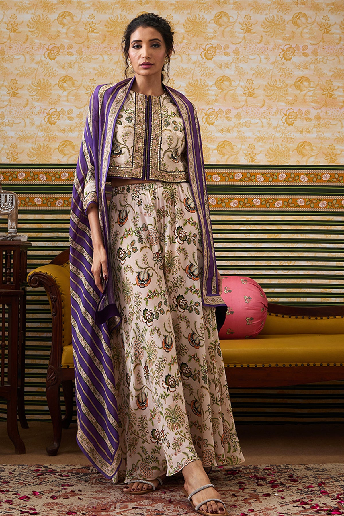 Fabric: Top- Brocade Silk, Pants- Crepe, Cape- Organza