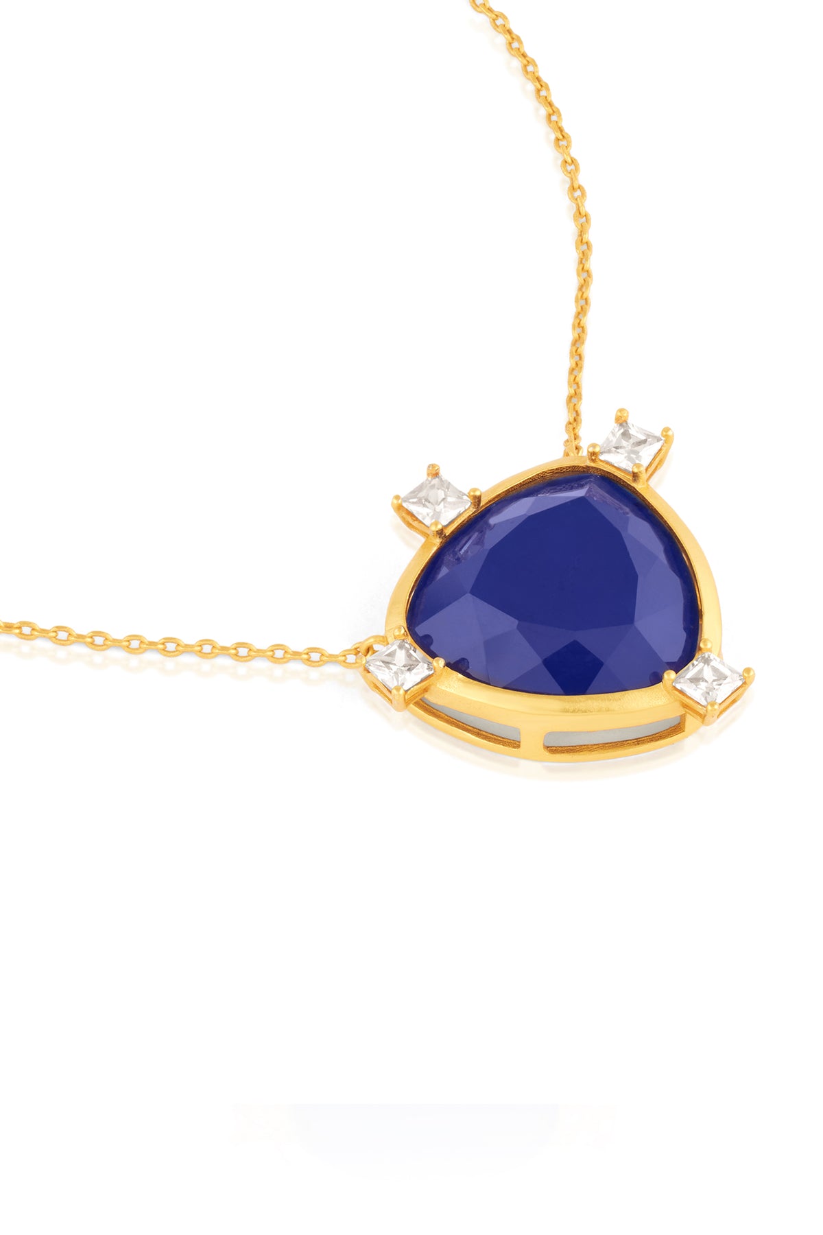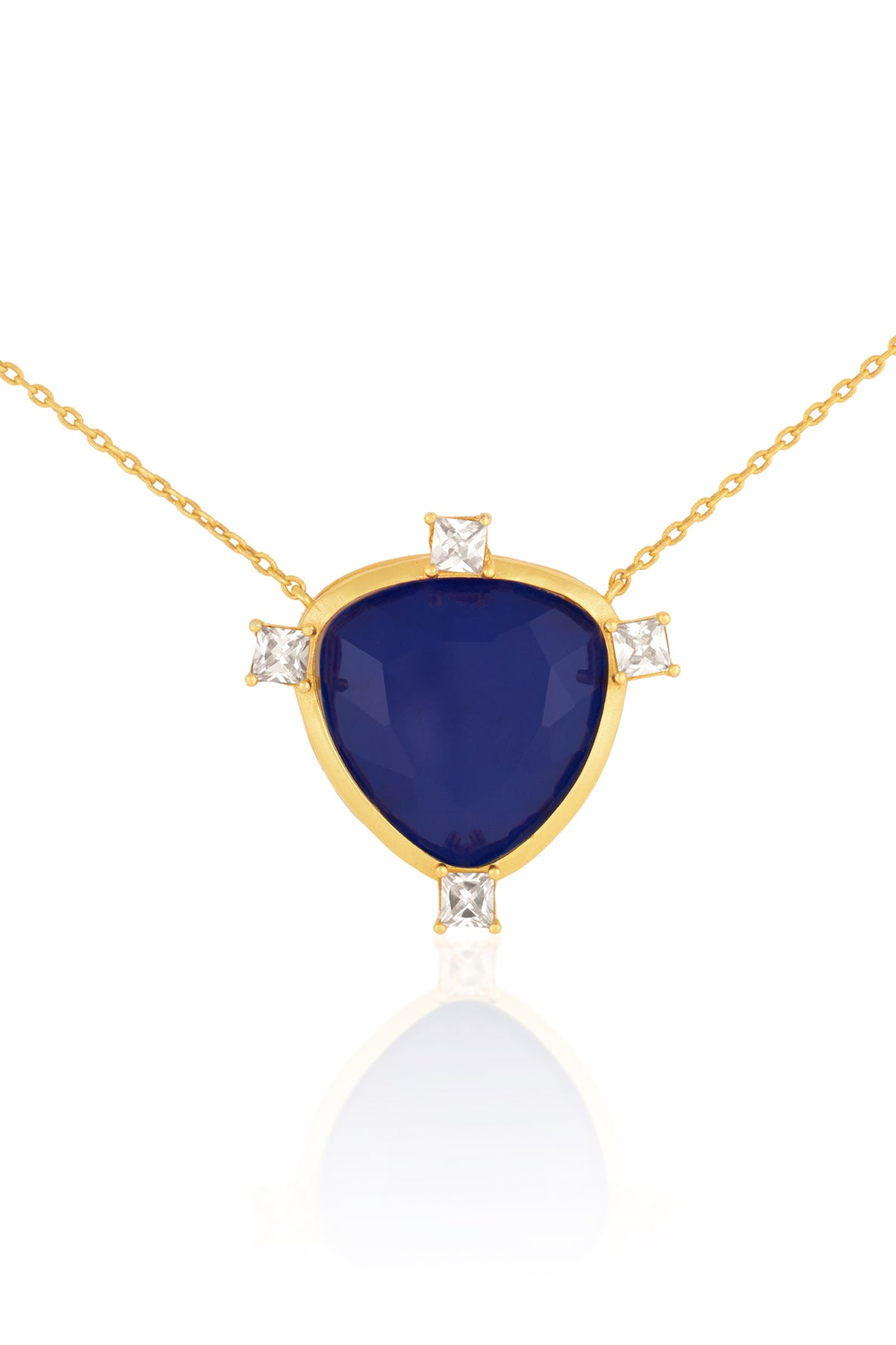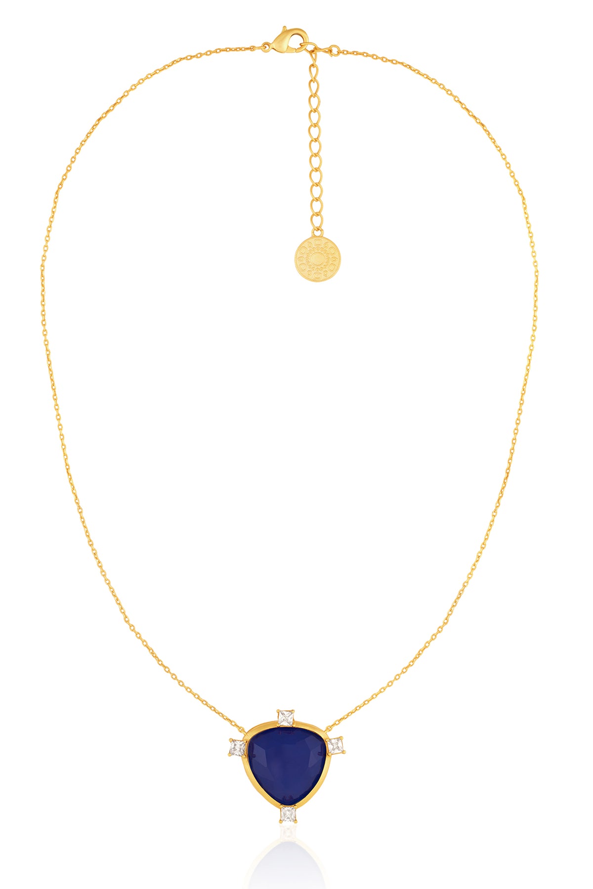 This vintage-inspired sapphire mirros layered necklace is crafted in brass and plated with 18k gold. It features exquisite blue doublet and mirror-work pendants with double-layered chains to take the stress out of stacking. Style it with everything from heirloom sarees to cocktail dresses for every celebration.