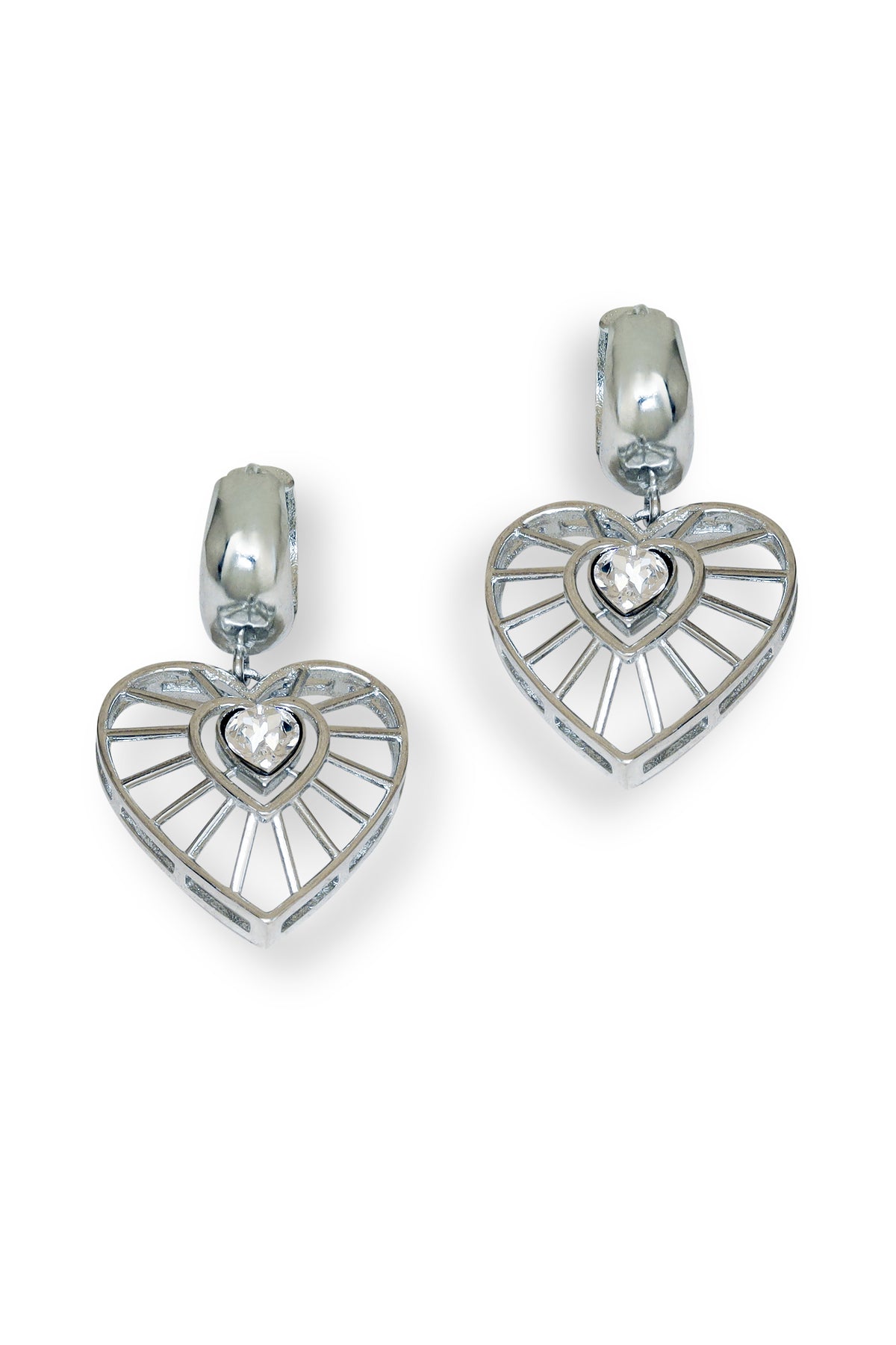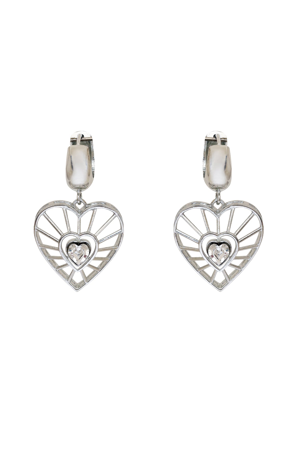 The darling dream earrings are these delicate drops studded with a unique heart shaped swarovski in its centre. Surrounded by delicate metal lines that gracefully encase the crystal, they form an elegant framework that reflects the strength and resilience of the human spirit.