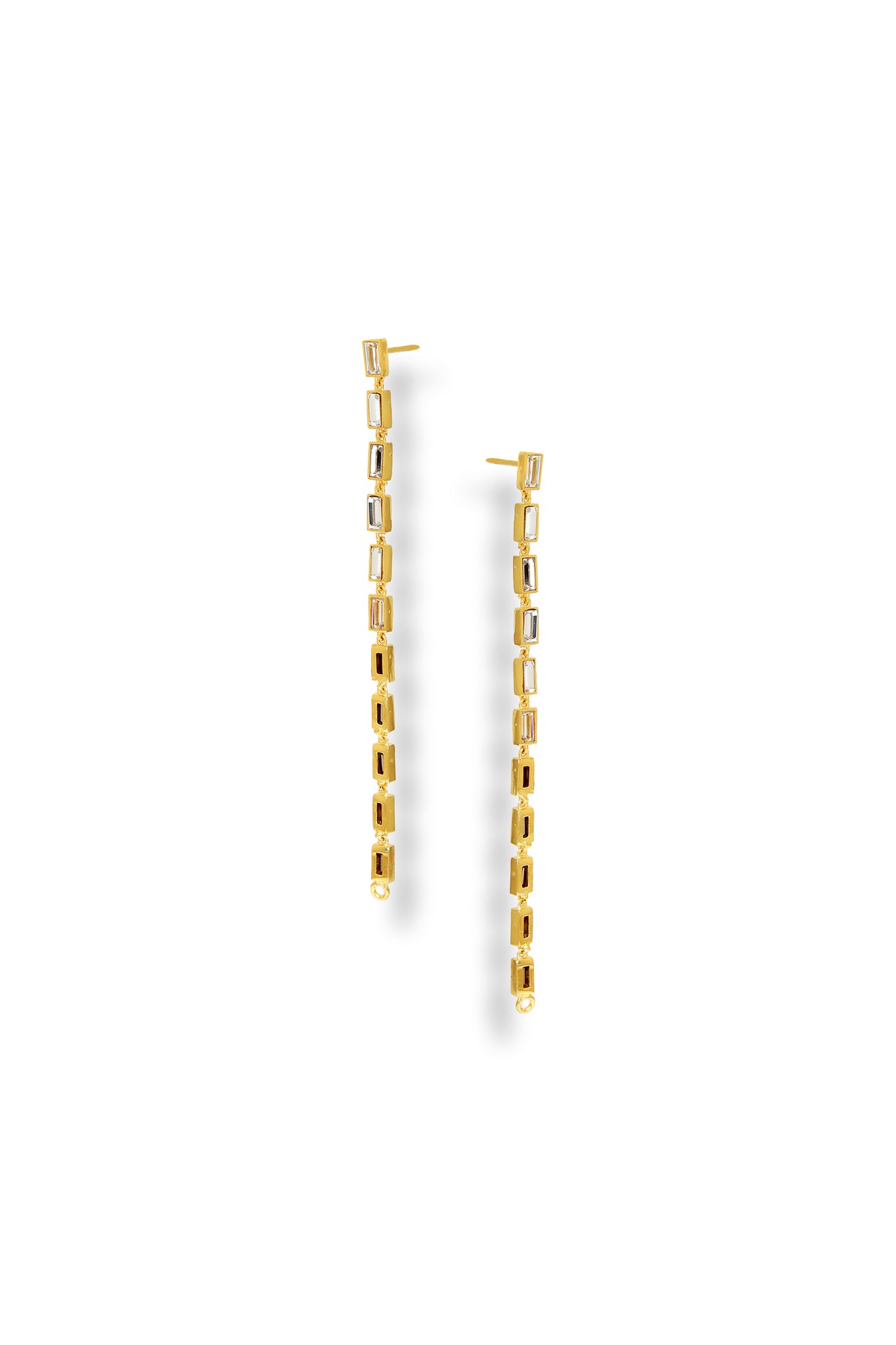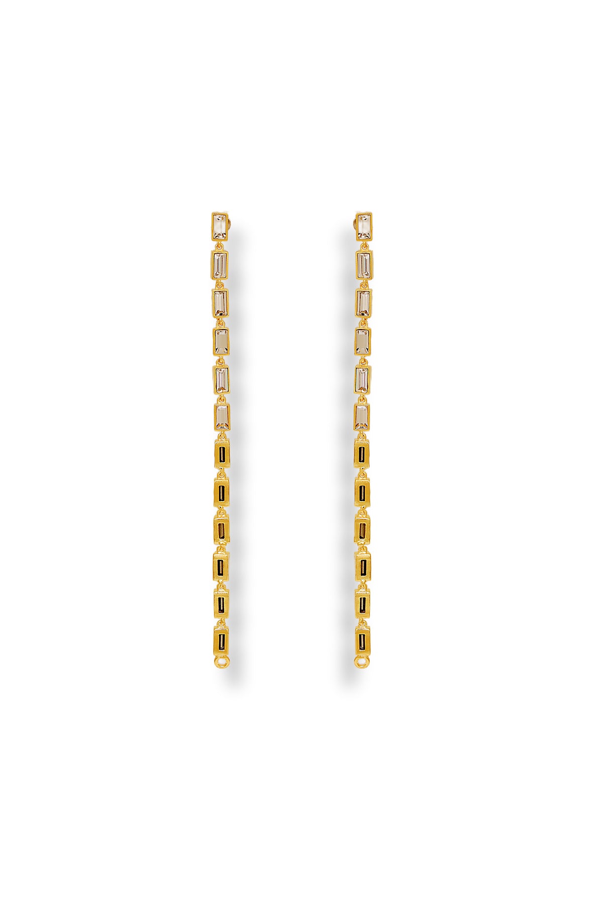 These are zip structured earrings studded with baguette shaped swarovski crystals that exude pure magic. These earrings can be styled 2 ways  - fold them to the back for a bolder and sporty look,  wear them straight for a delicate look
