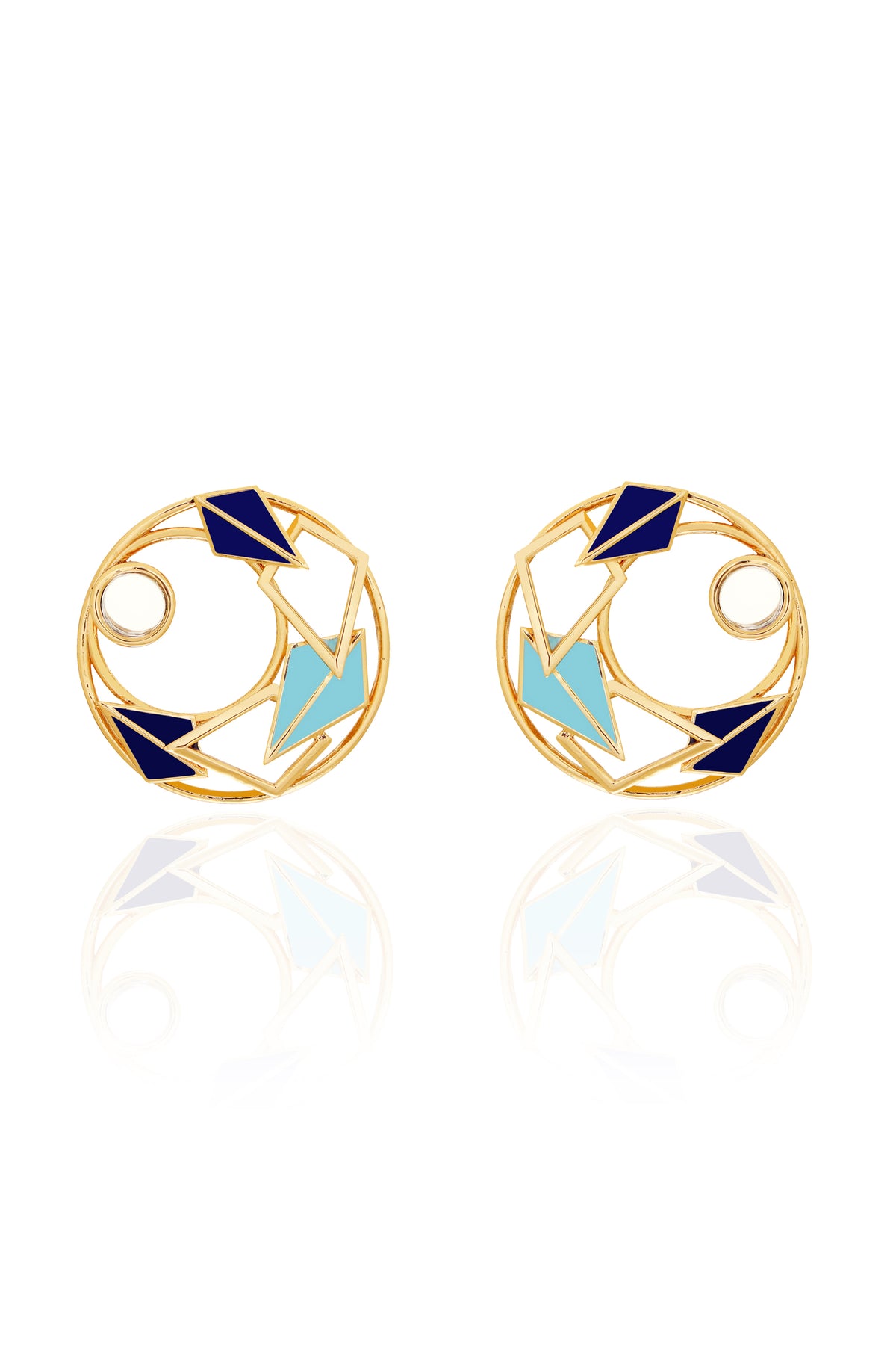 Gold plated enamelled round studs with mirror