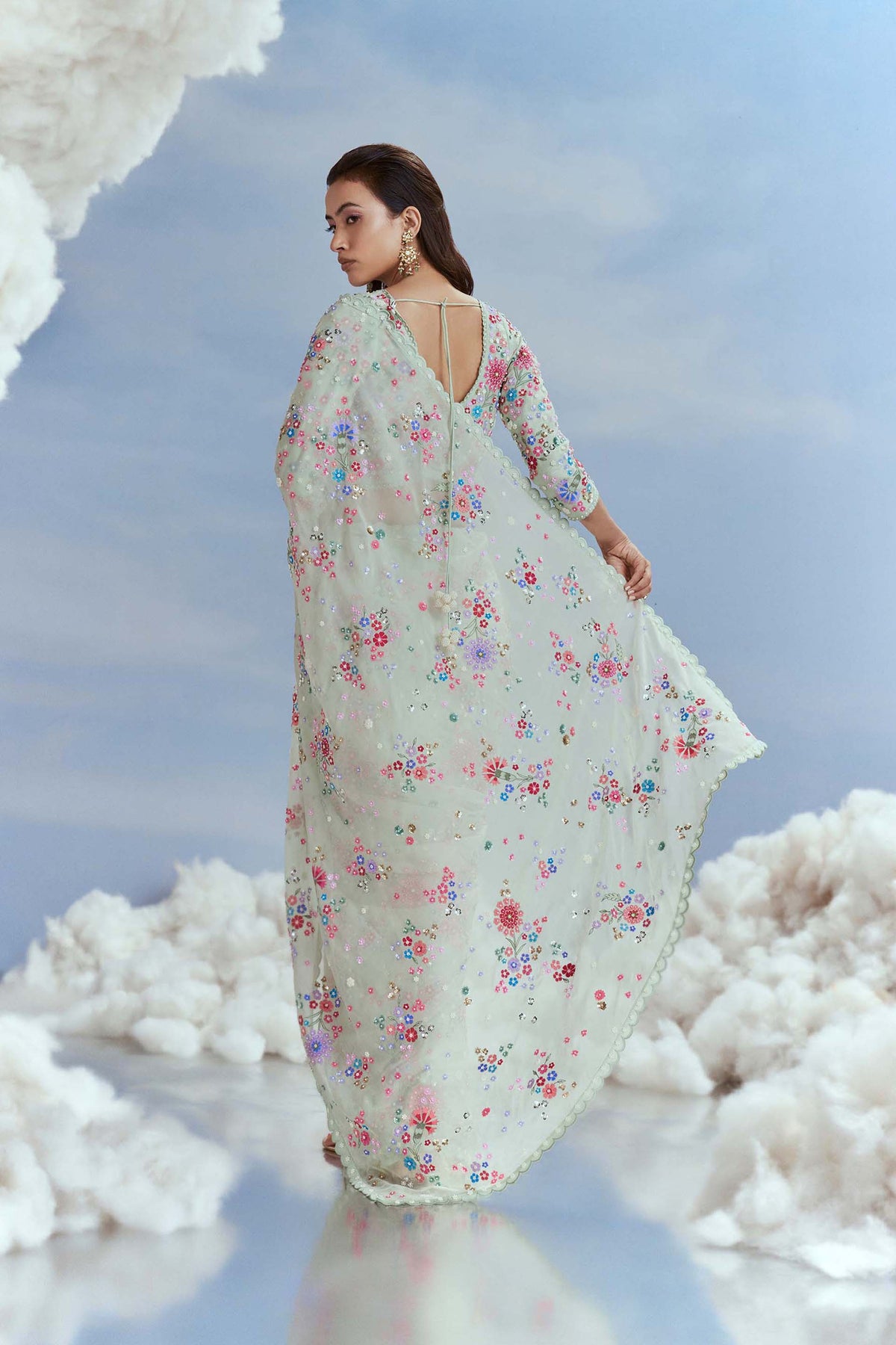 Izmir carnations organza sari + izmir carnations blouse + petticoat