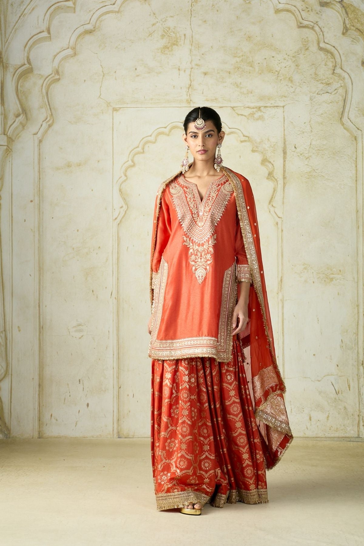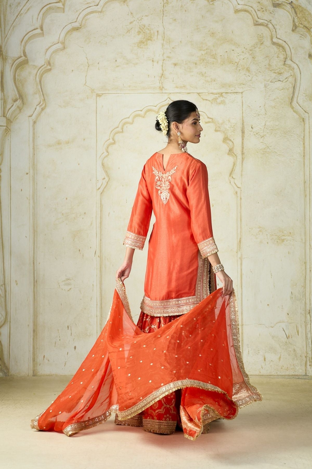 Fabric: Kurta & Sharara- Tussar, Dupatta-Banarasi Ā Organza