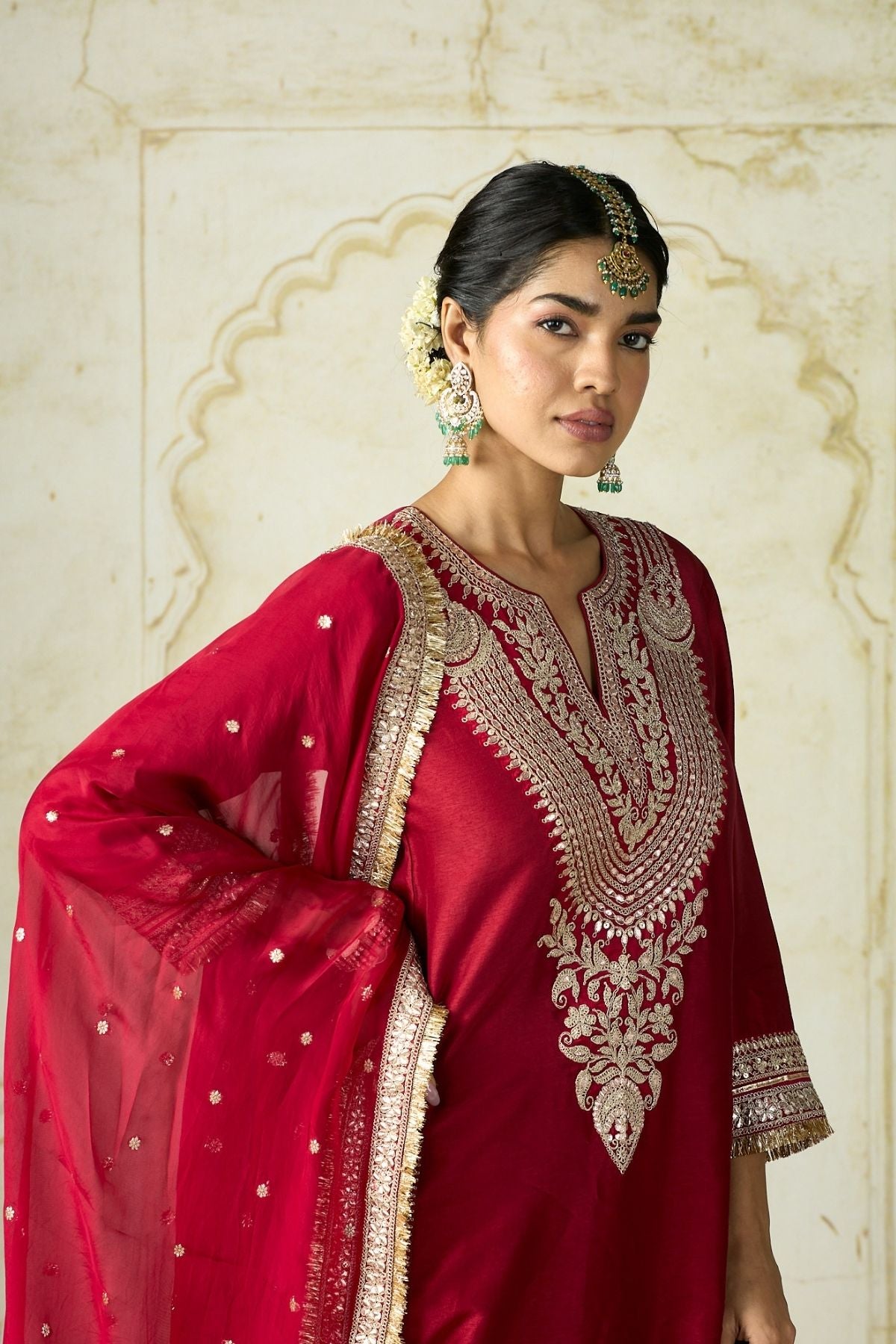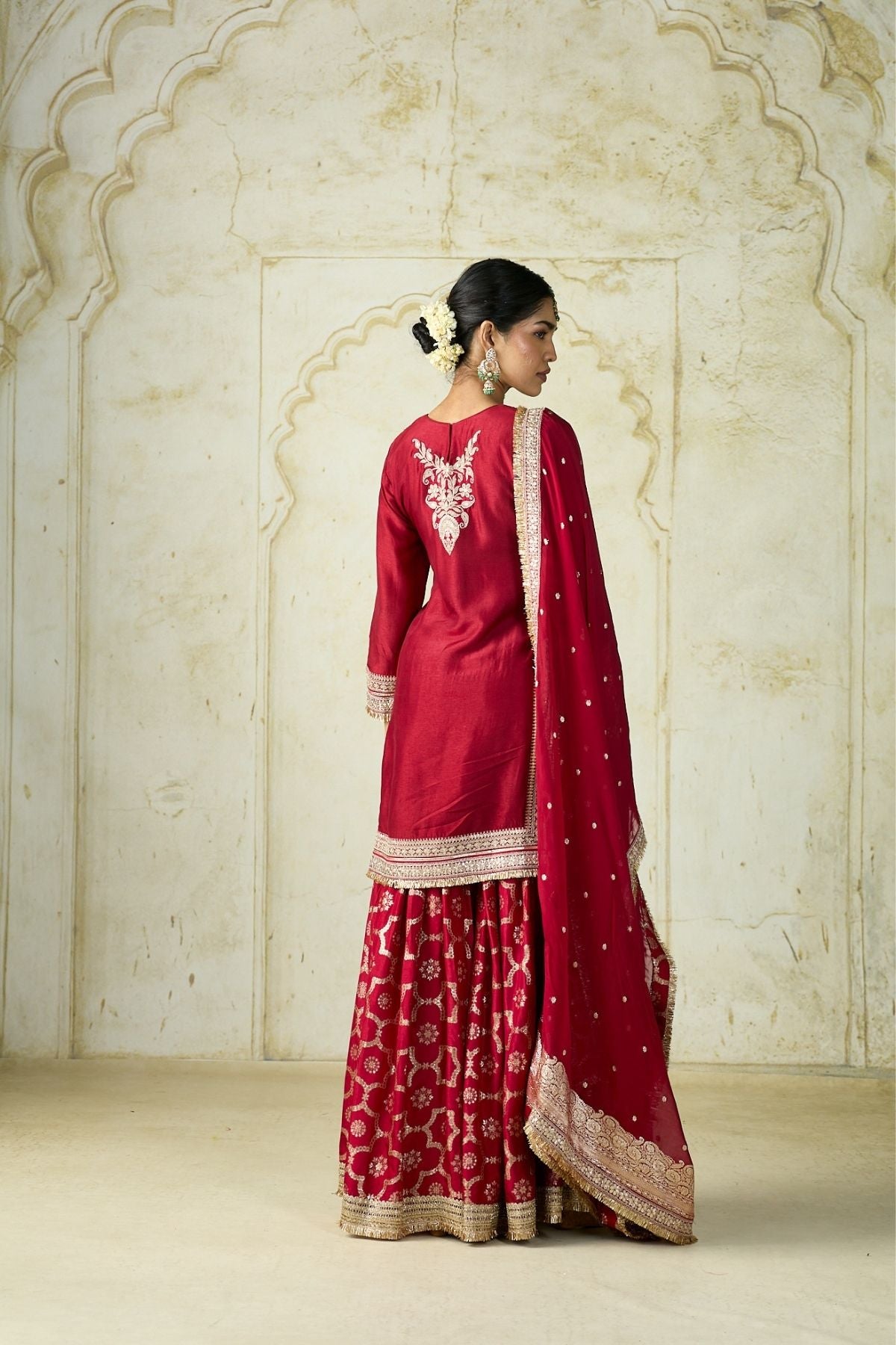 Gopi Vaid Ameena Sharara Set Red indian designer wear online shopping melange singapore