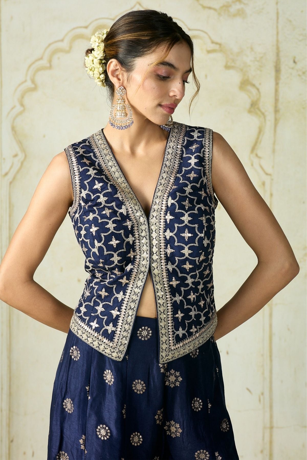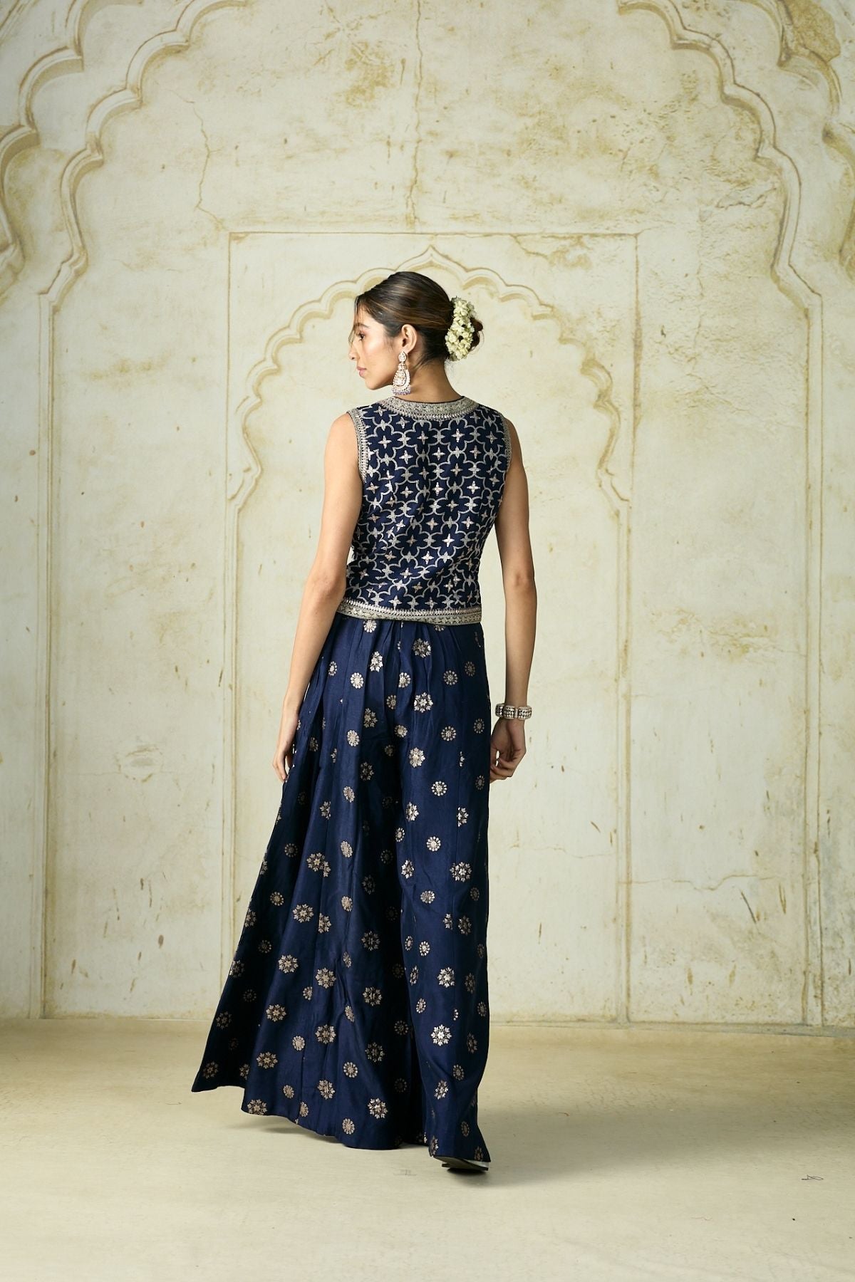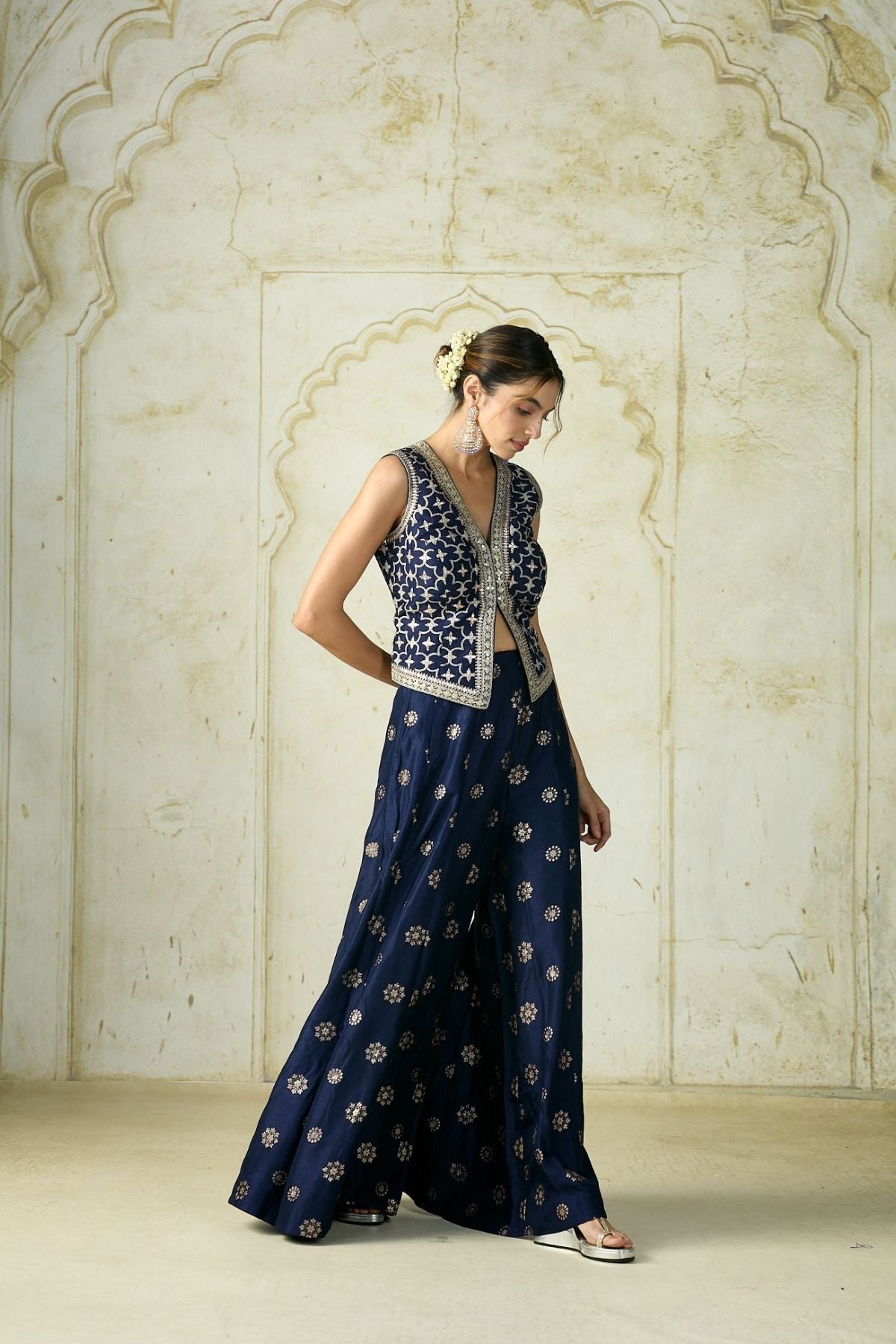 Gopi Vaid Mizna Pant Set Navy indian designer wear online shopping melange singapore