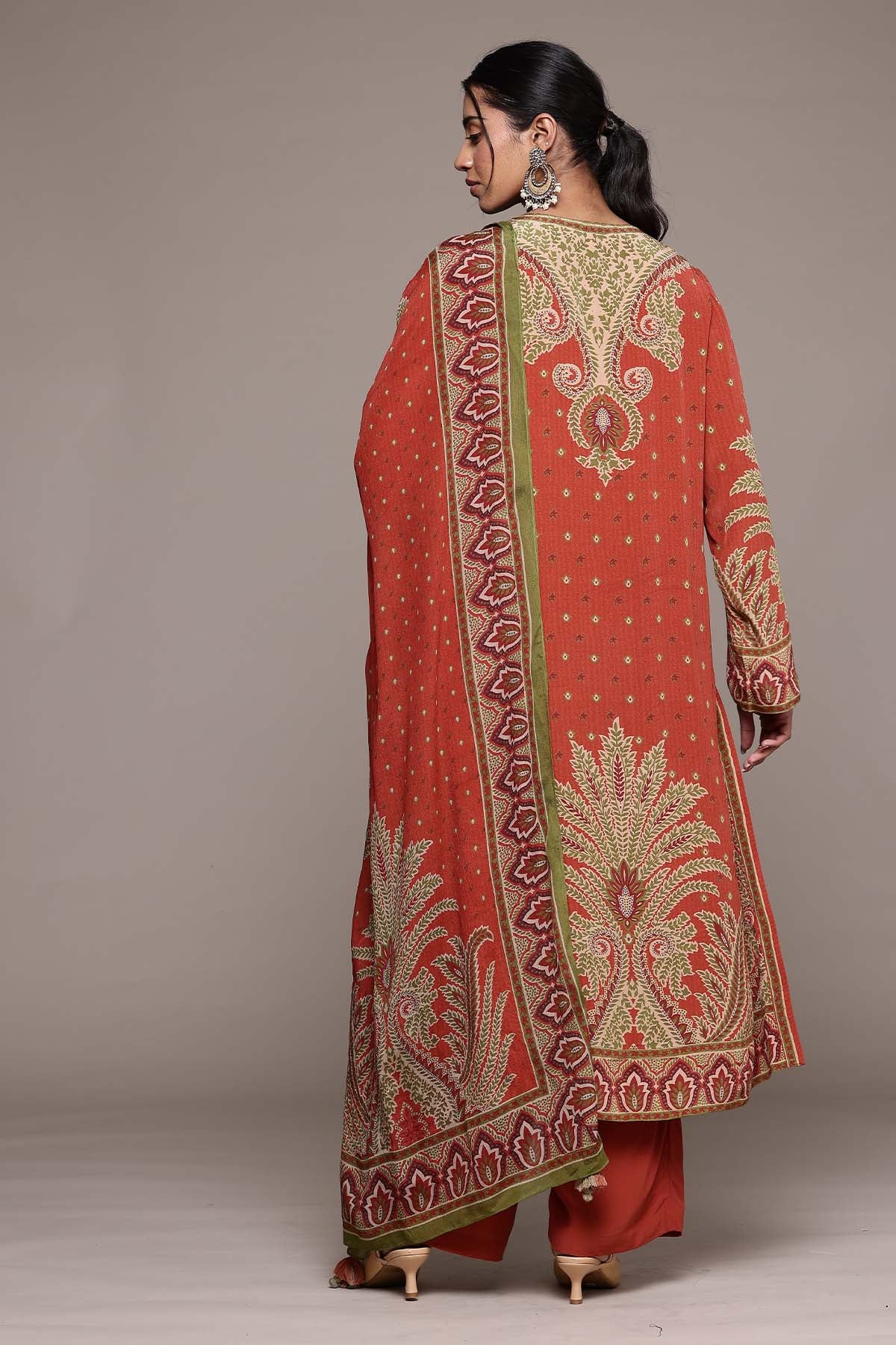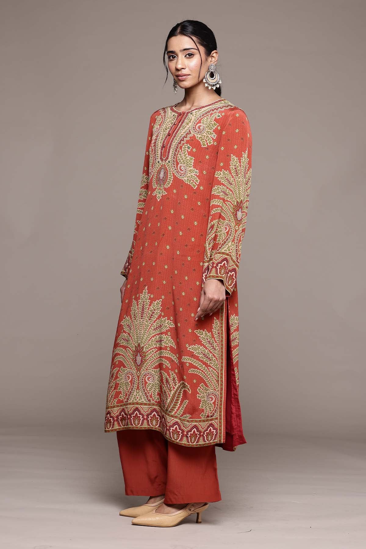 Ritu Kumar Rust Arith Kurta With Pant And Dupatta indian designer wear online shopping melange singapore