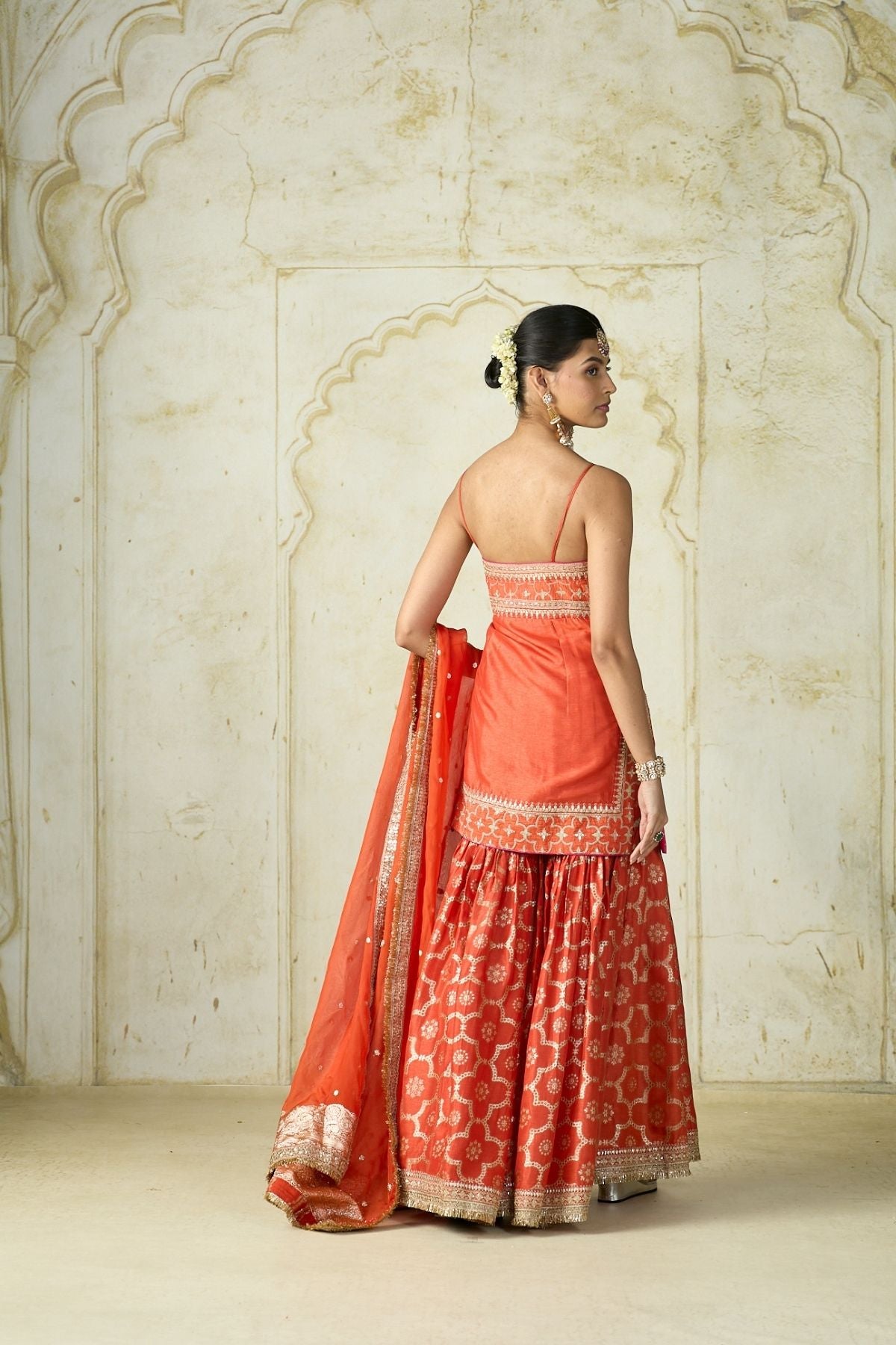 Fabric: Kurta & Sharara- Tussar, Dupatta-Organza