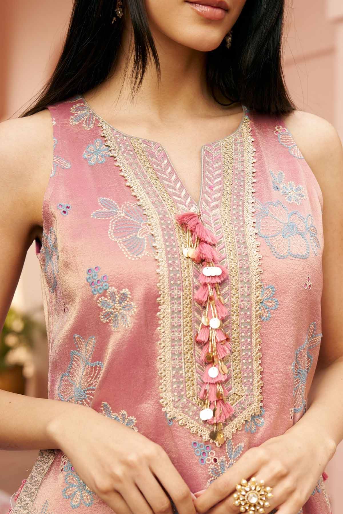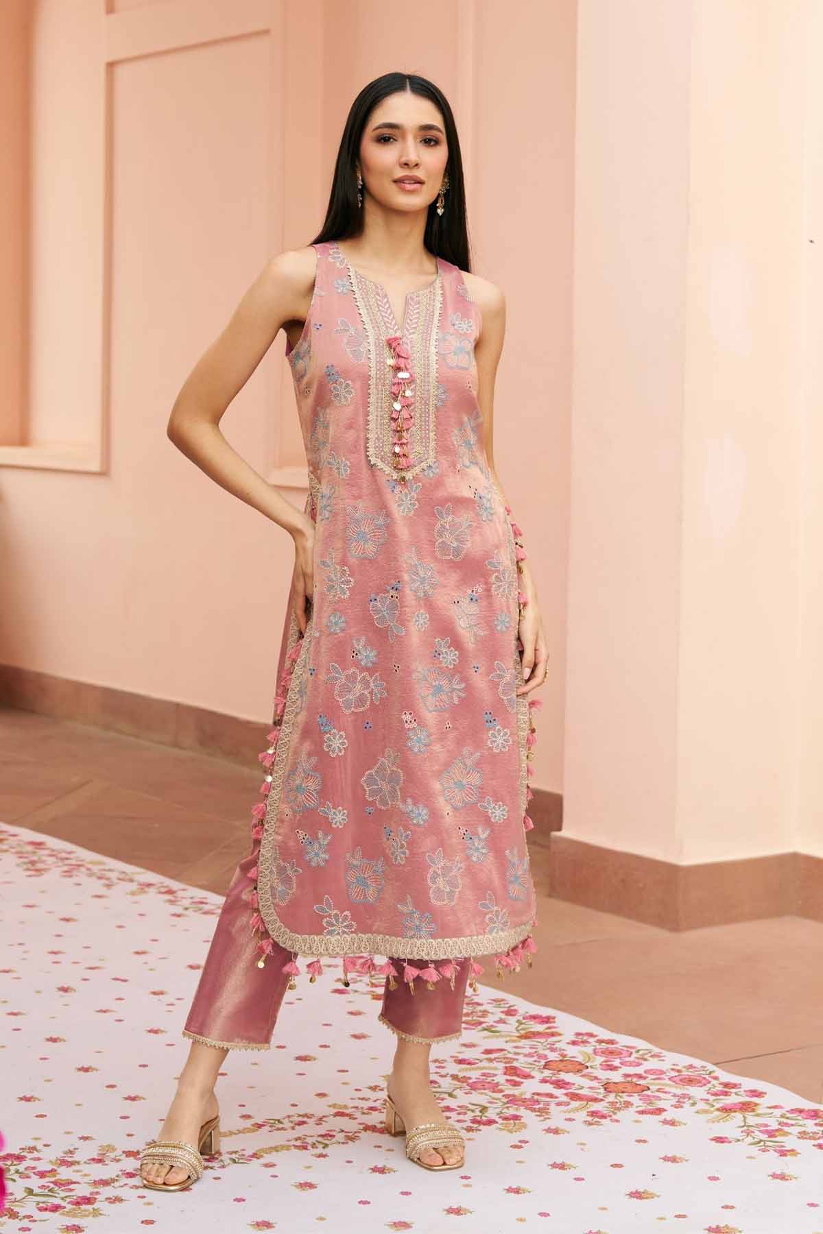 Crafted in luminous tissue, this kurta set feels light, fluid, and softly festive. The delicate sheen and gentle drape make it an easy pick for daytime celebrations, intimate gatherings, and moments that call for understated elegance.