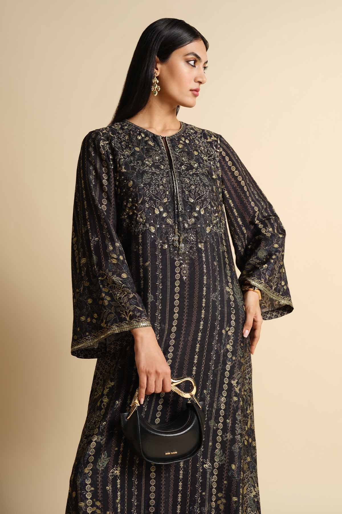 Anita Dongre Rumiana Kaftan Black indian designer wear online shopping melange singapore