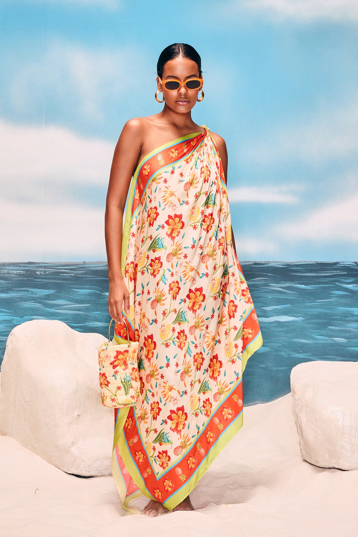 From beachside brunches to sunset soirées, our one-shoulder scarf dress adds a touch of flair to your vacation wardrobe.