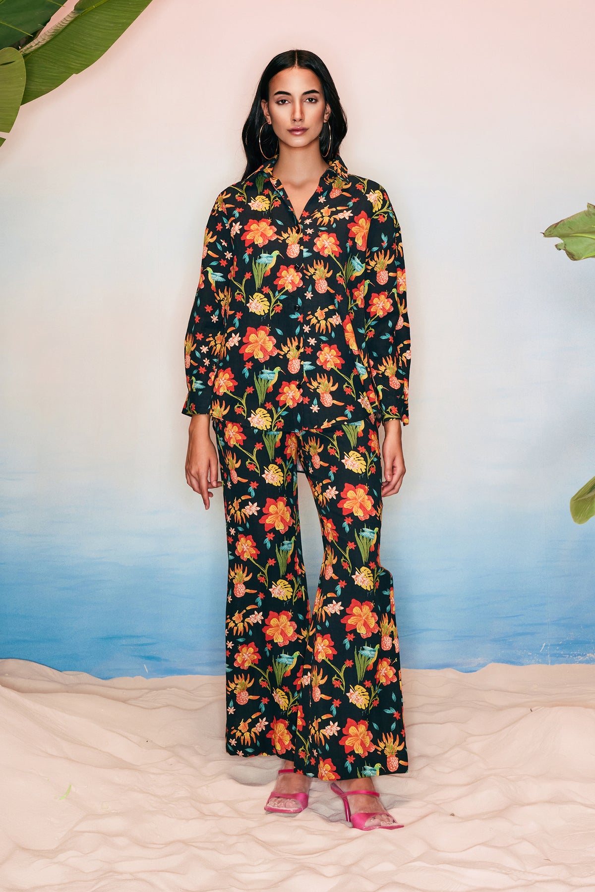 A chic yet timeless addition to your wardrobe, the linen shirt in Sitara print paired with pants is the epitome of effortless elegance and superior comfort.