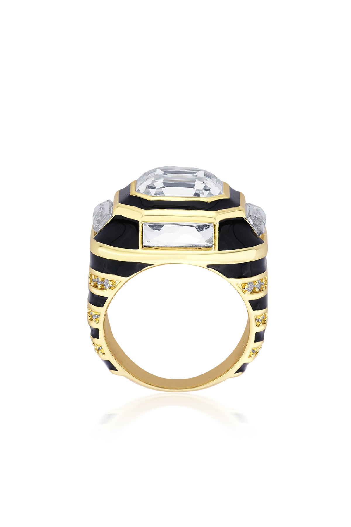 Introducing our elegant optic crystal enamel ring, crafted with sparkling crystal and adorned with 18-karat gold and our exclusive isharya signature colored plating in black. Elevate your style and make a statement with this luxurious accessory.