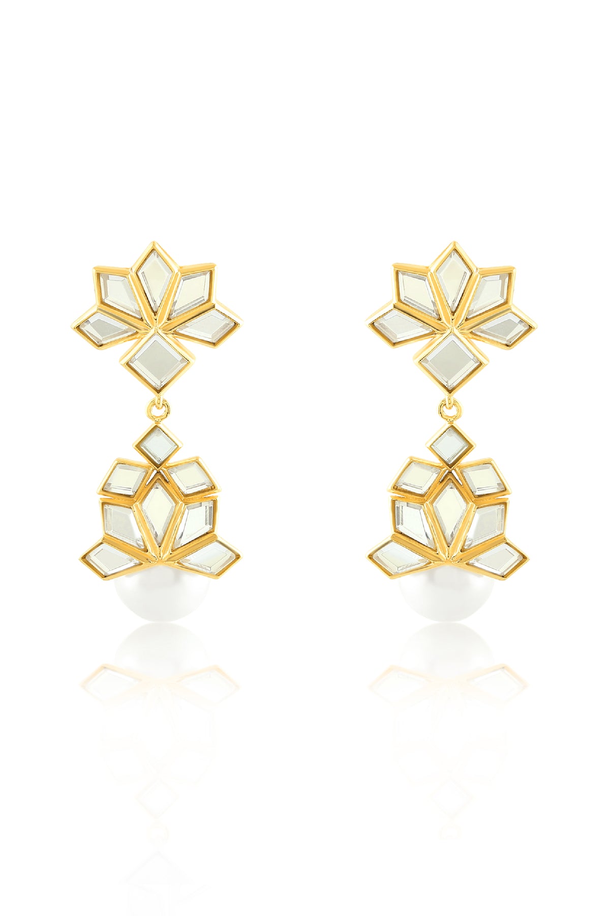 Material : Mirror, Pearls, CZ & 18Kt Gold Plating