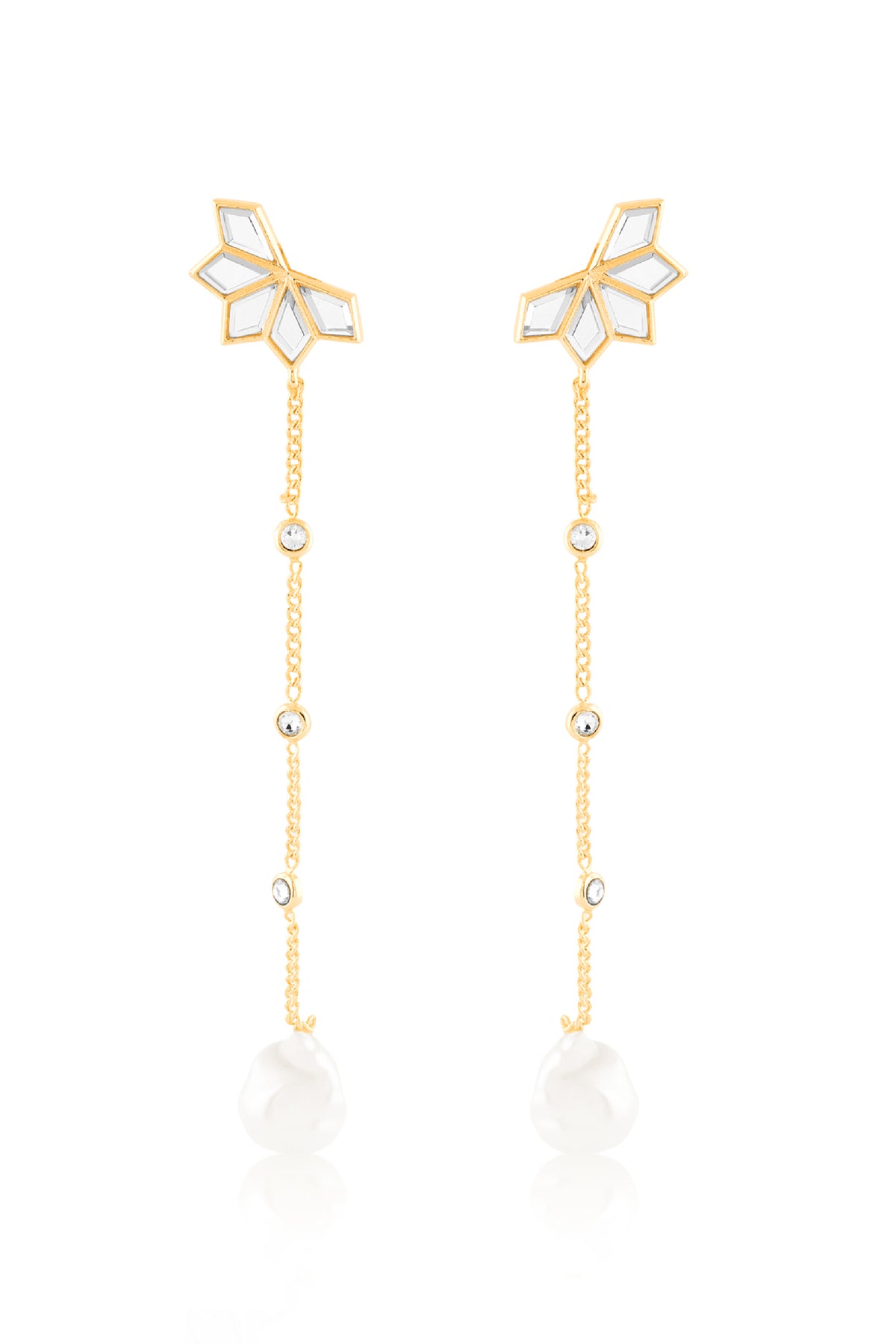 Material : Mirror, Pearls, CZ & 18Kt Gold Plating