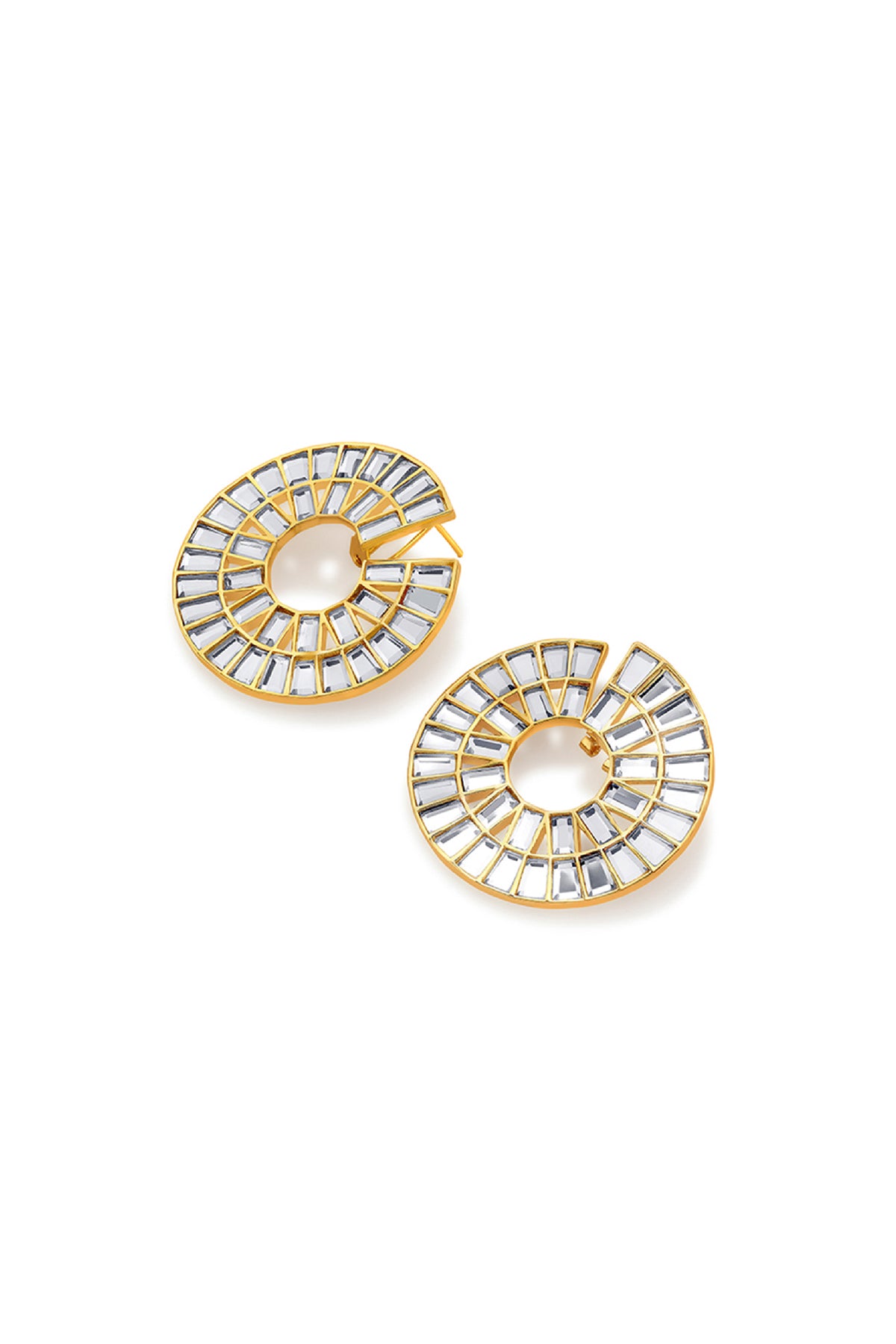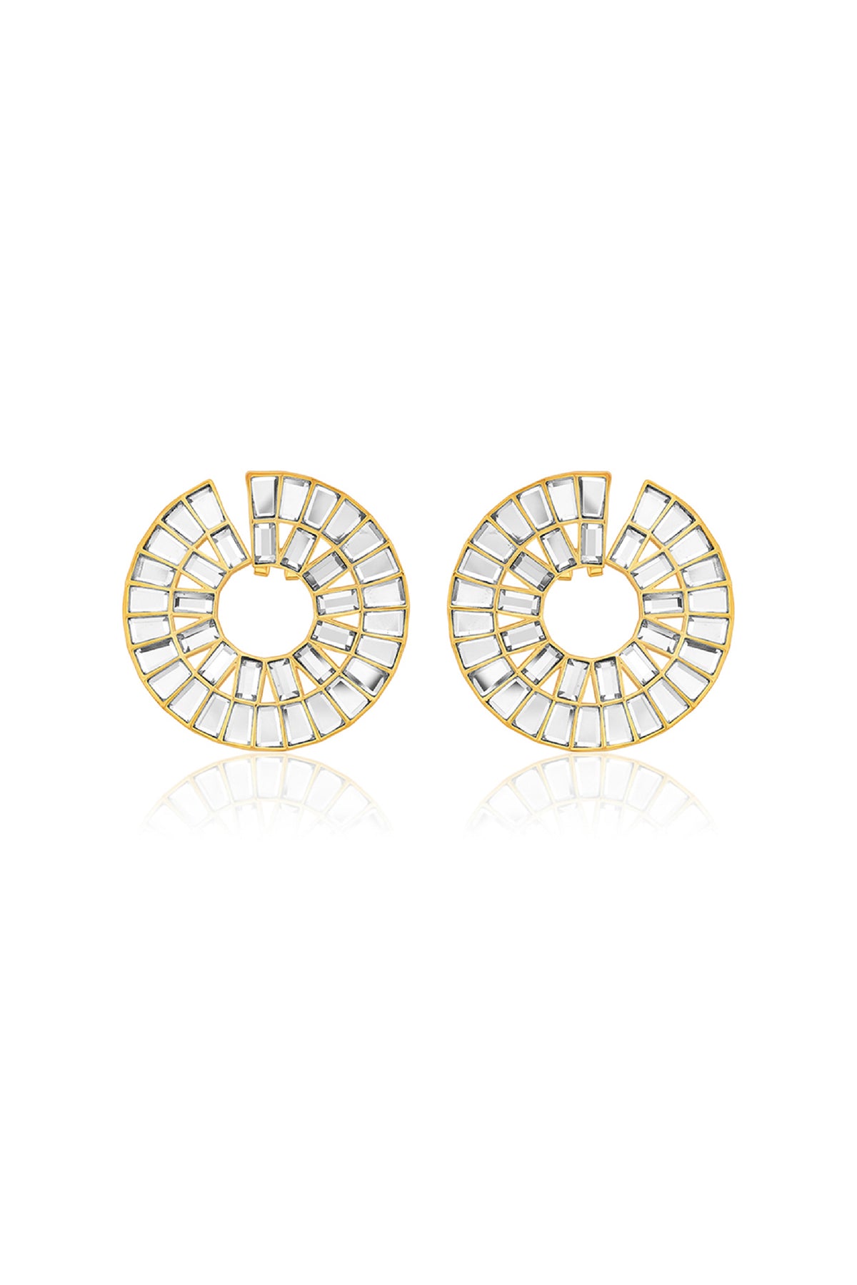 Flat accordion style earrings handcrafted with mirror glass and gold-plated brass.