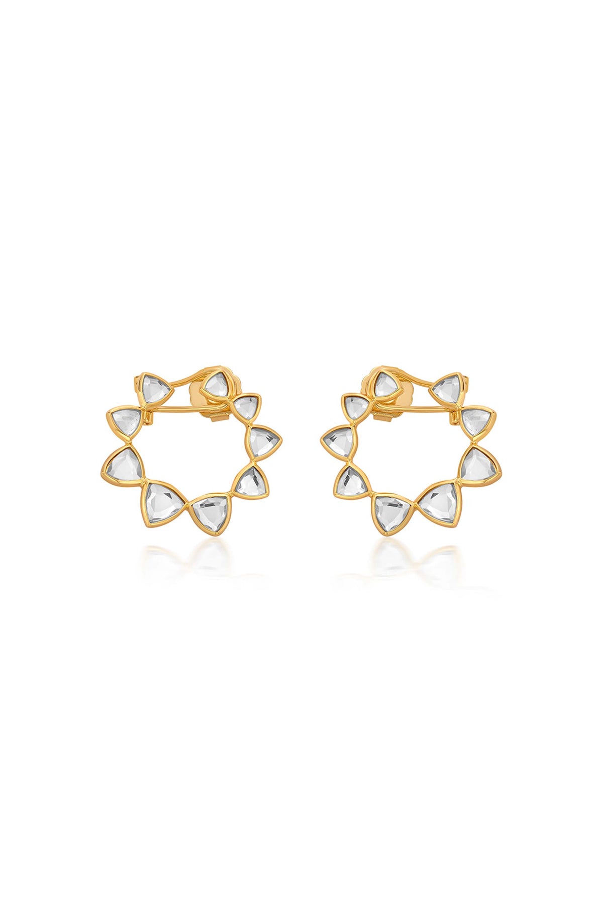 These earrings are handmade from gold-plated metal and illuminated with twinkling polki-cut mirrors