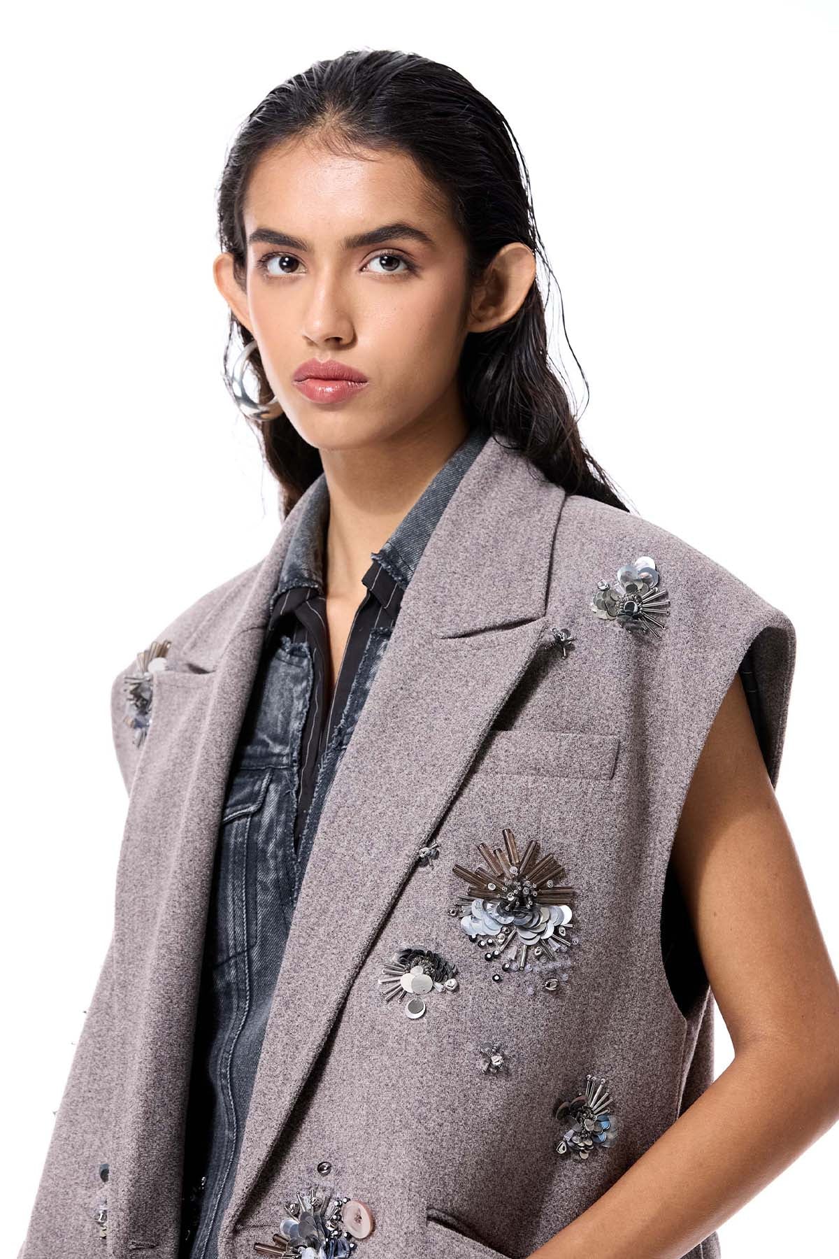 Kanika Goyal Label Grey Frost Bud Vest indian designer wear online shopping melange singapore