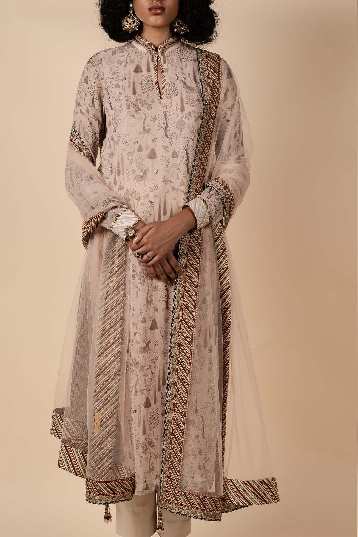Fabric: Tunic- Viscose Georgette, Pants- Viscose, Stole- Tulle