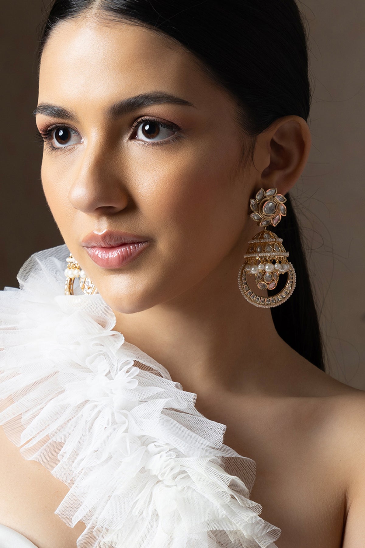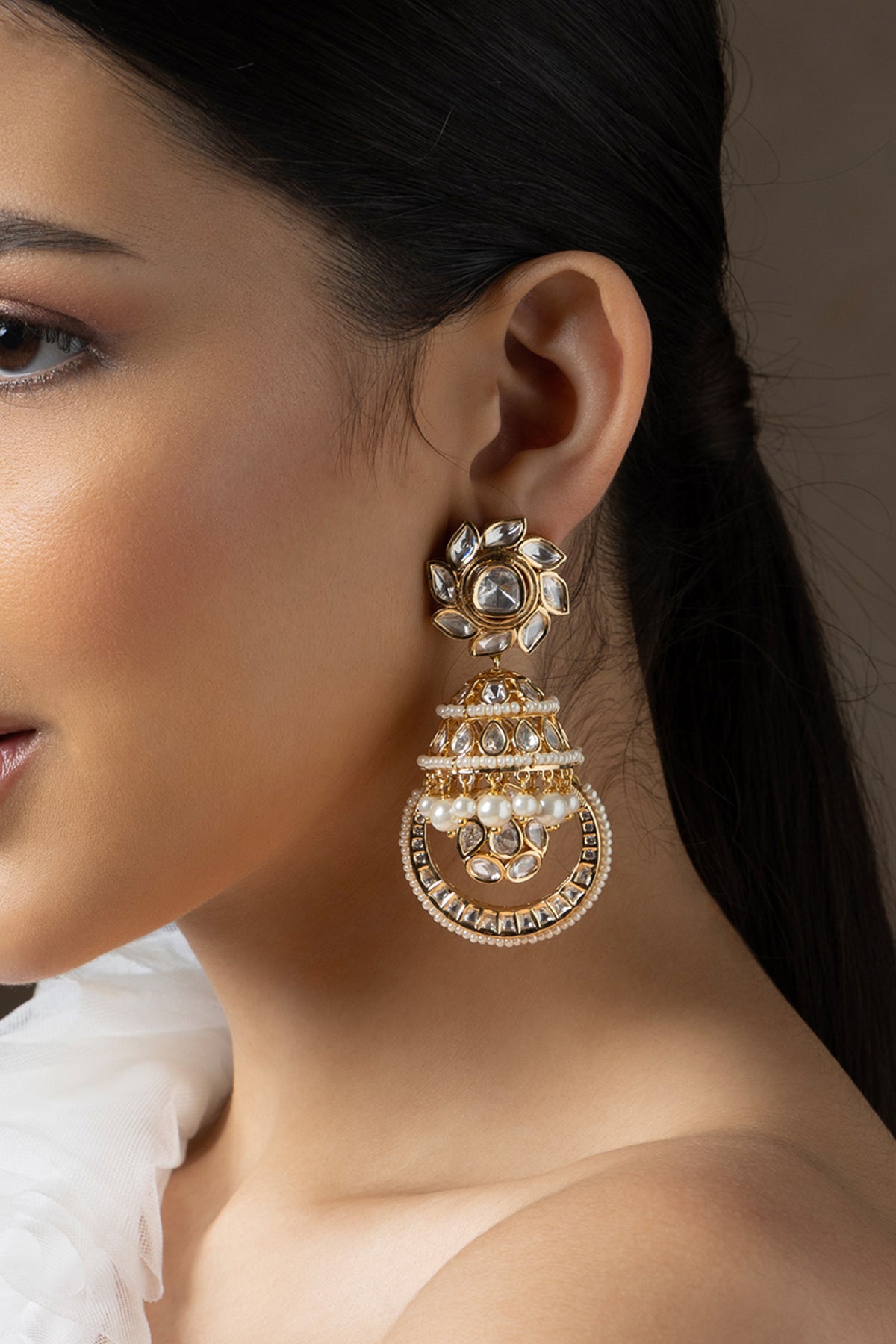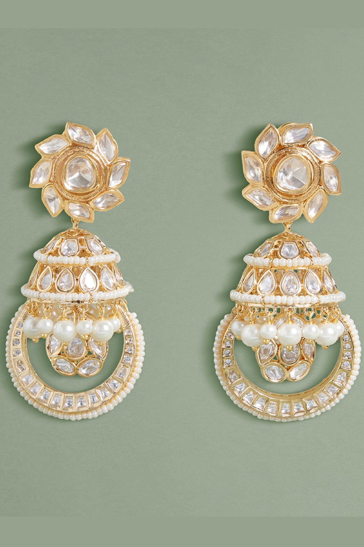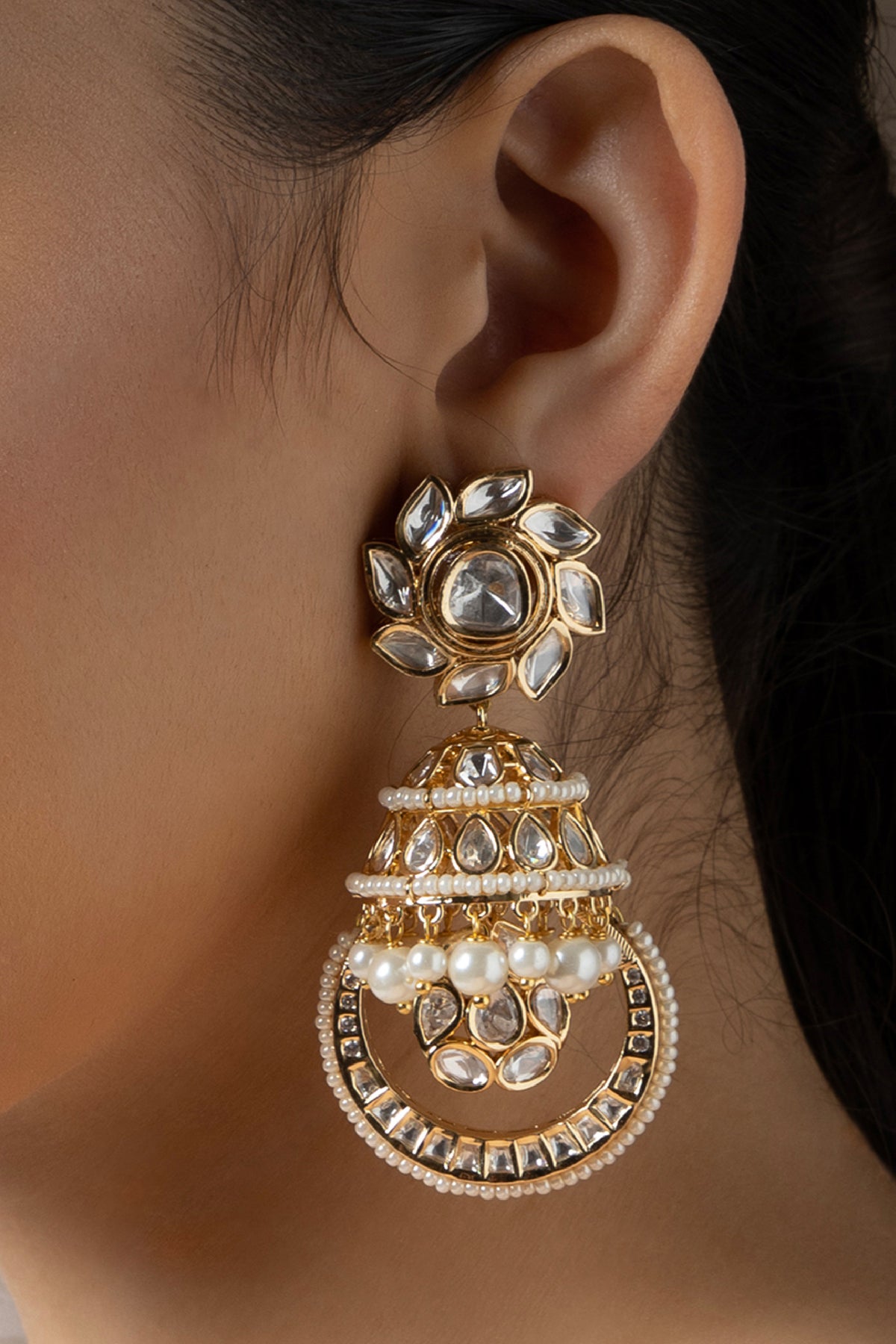Dazzle on every occasion with our 22kt gold plated earrings! Adorned with enchanting hydro polkis and lustrous pearls, these earrings are perfect for weddings, parties, festivals, or personal milestones. Embrace timeless beauty and elevate your style, radiating grace and charm wherever you go.