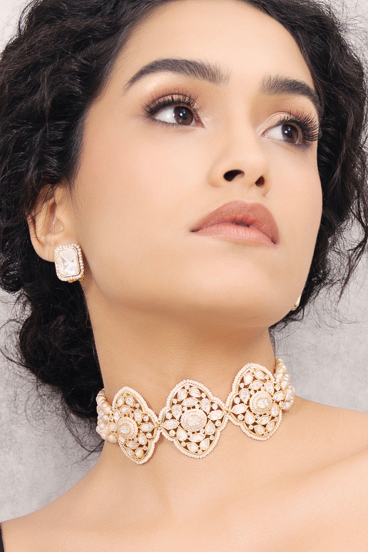 A classic choker necklace made from brass with a radiant yellow gold finish.