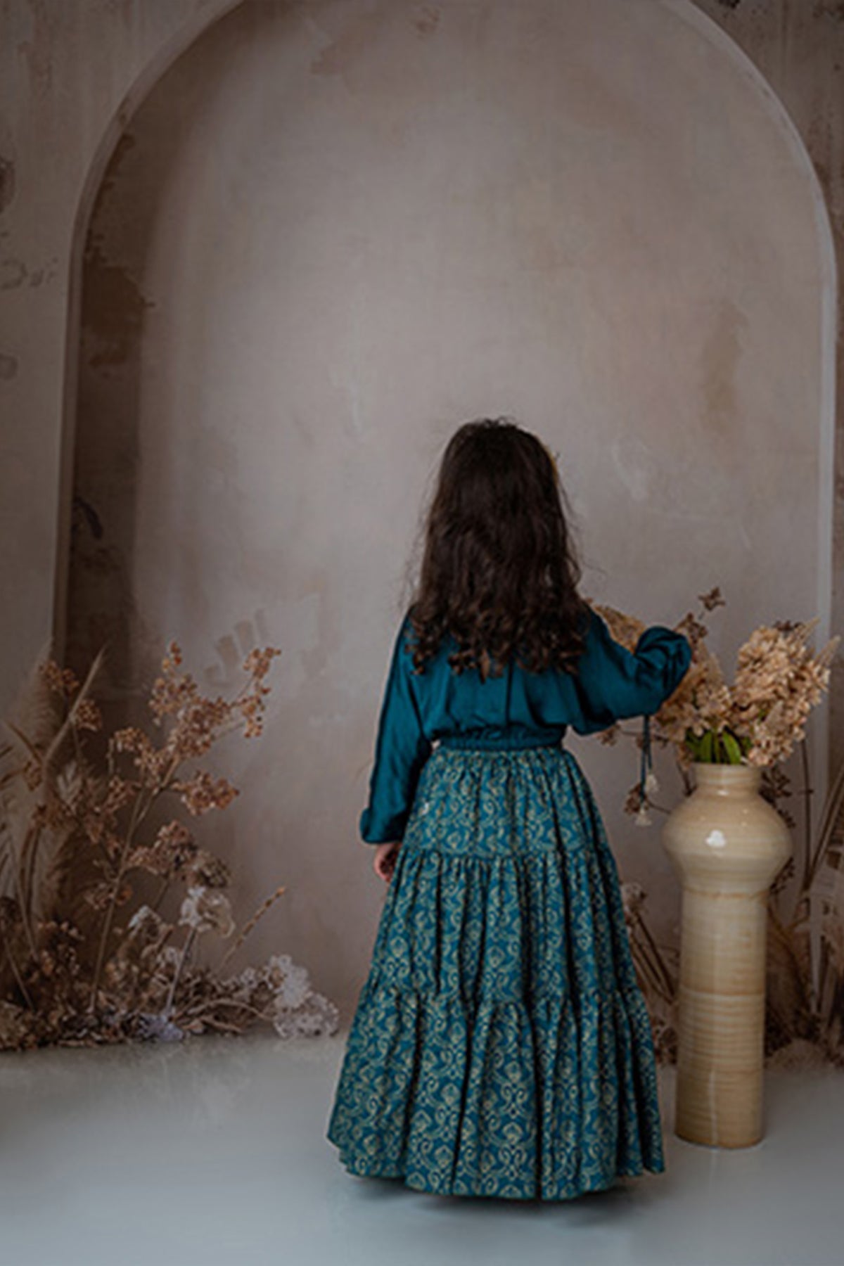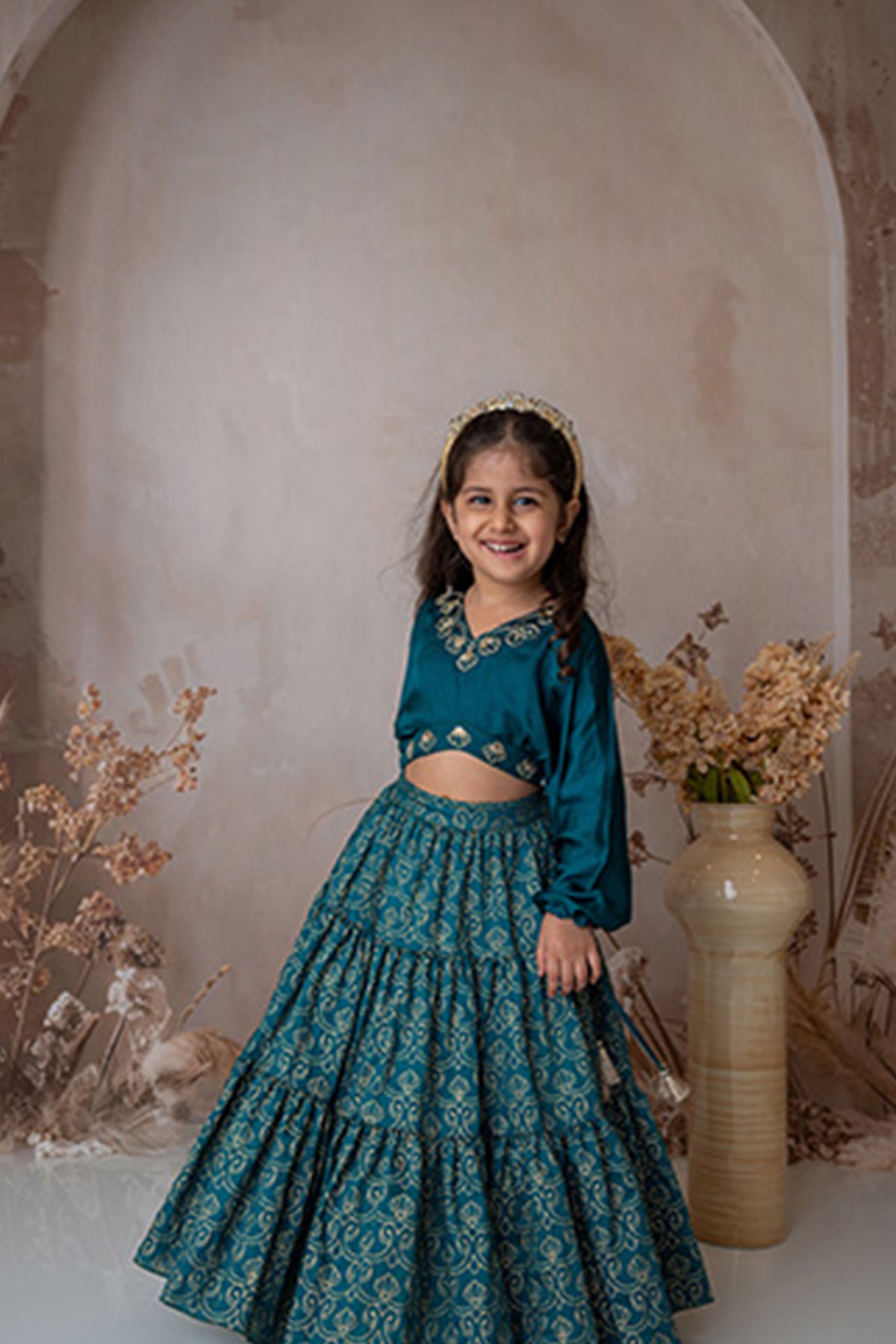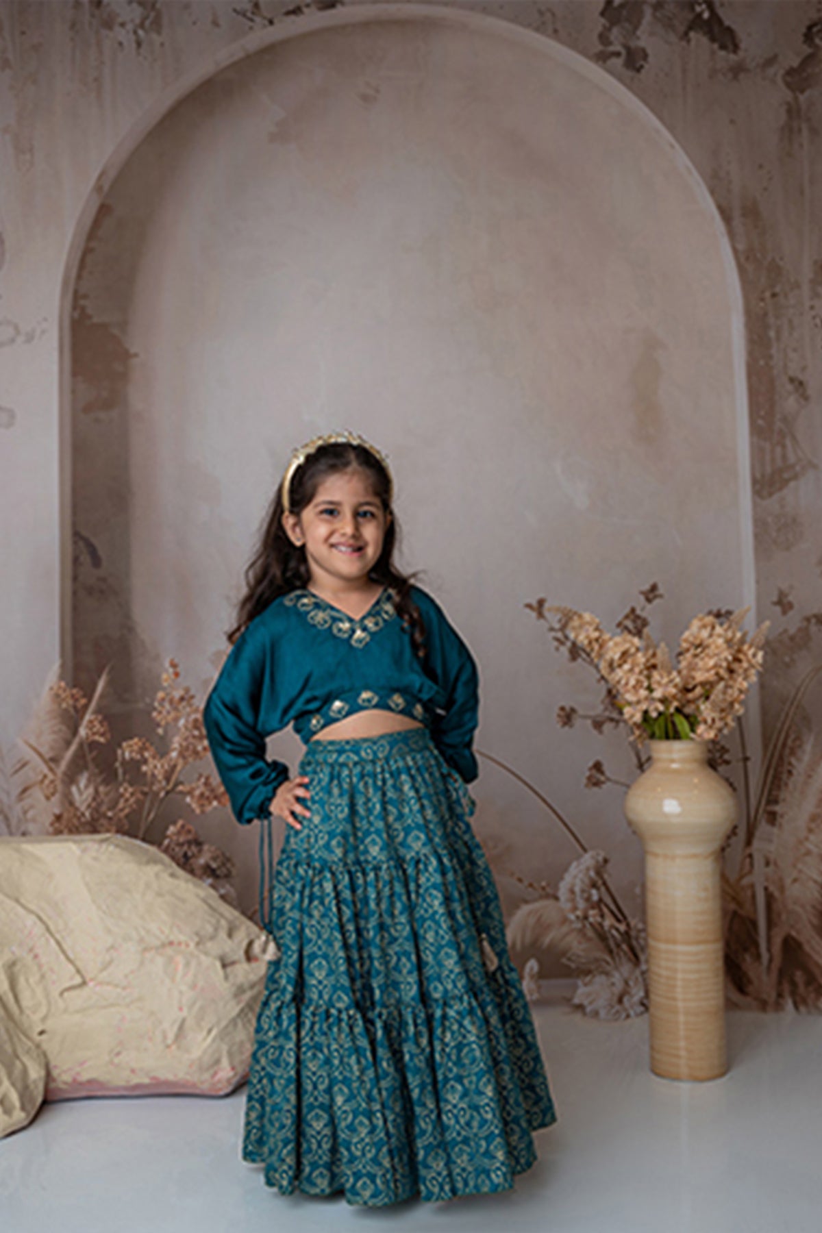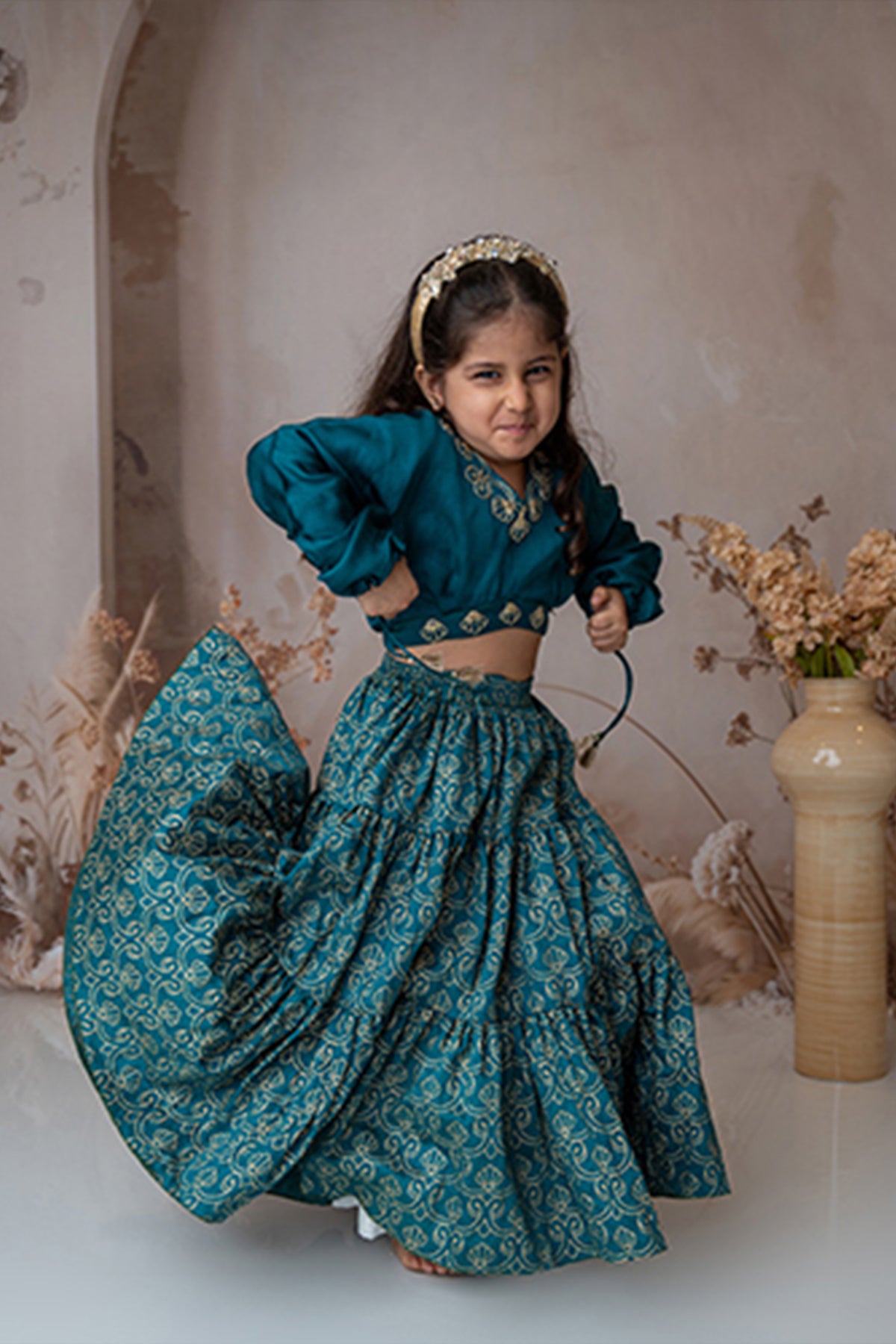 Mi Dulce Anya Stylish Crop Top With Tiered Lehenga Teal indian designer wear online shopping melange singapore