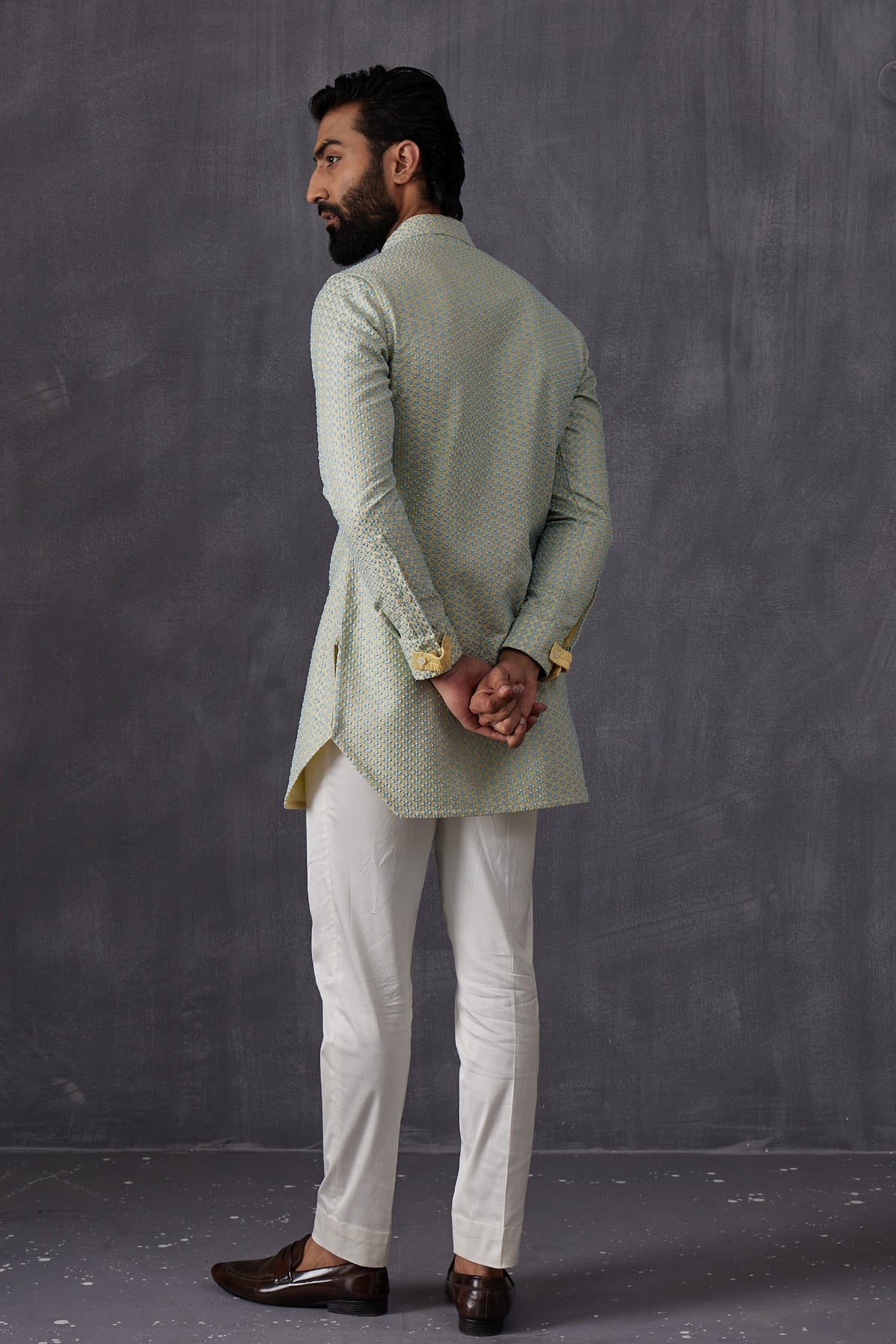Arjan Dugal Embroidery Inara 3.0  Front Open Edgecut Kurta With Off White Pant Indian designer wear online shopping melange singapore