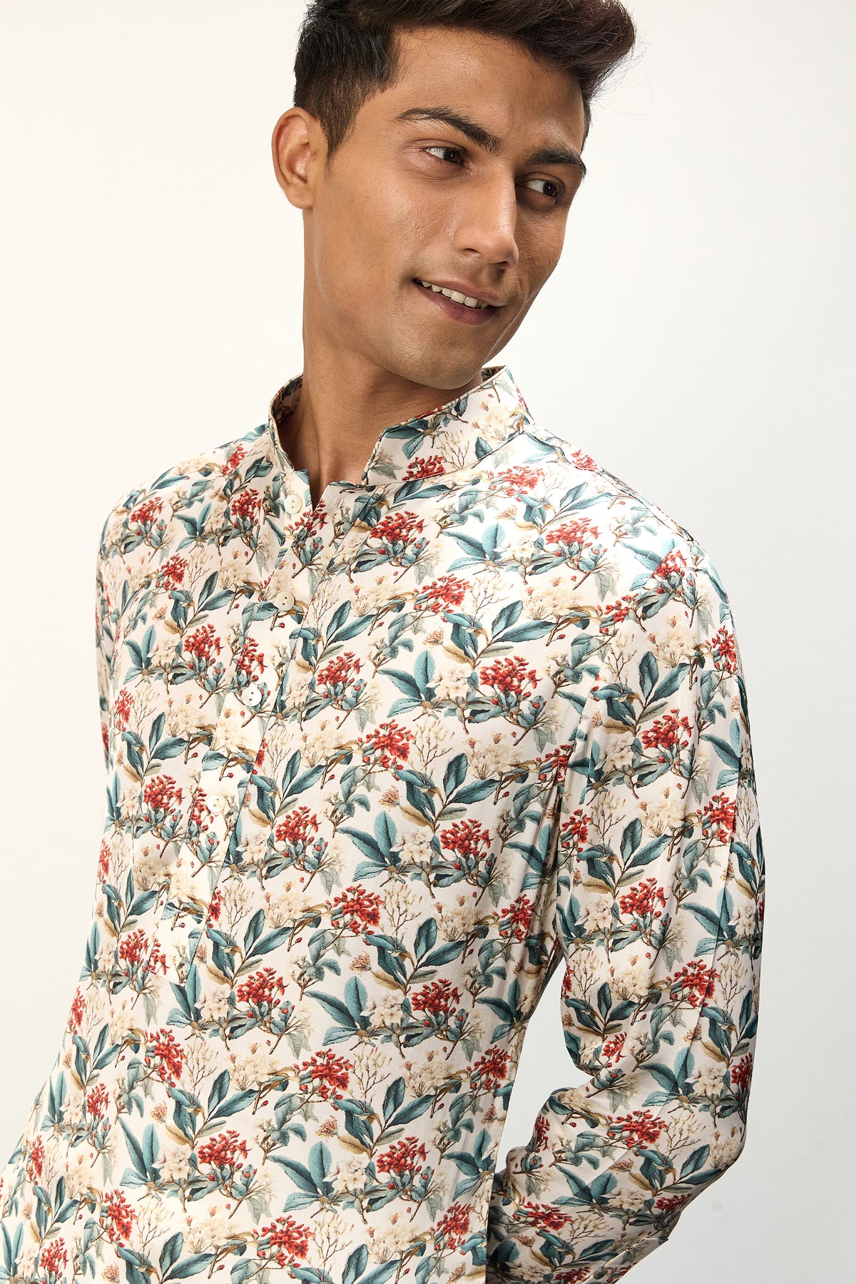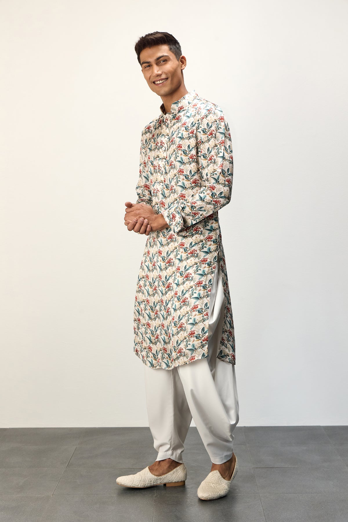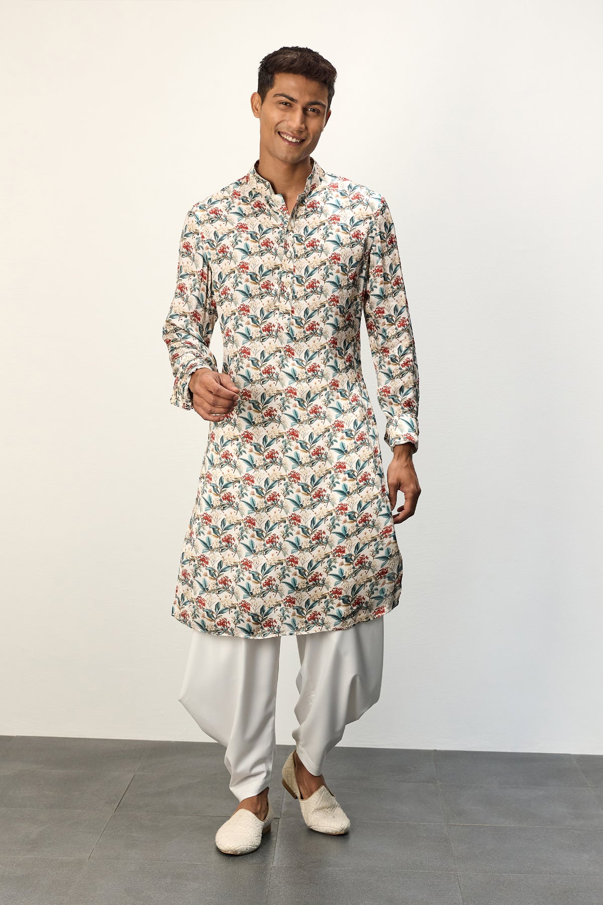 Printed kurta set scarlet sage ivory